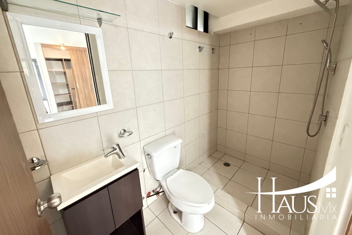 Un pasillo te conduce primero a la recámara secundaria, que comparte un baño que también sirve como de visitas. Al fondo, la recámara principal, con su propio baño, ofrece privacidad. Todo el departamento cuenta con ventanas hacia el exterior, lo que trae luz natural en cada rincón, haciendo que los ambientes se sientan amplios y agradables.