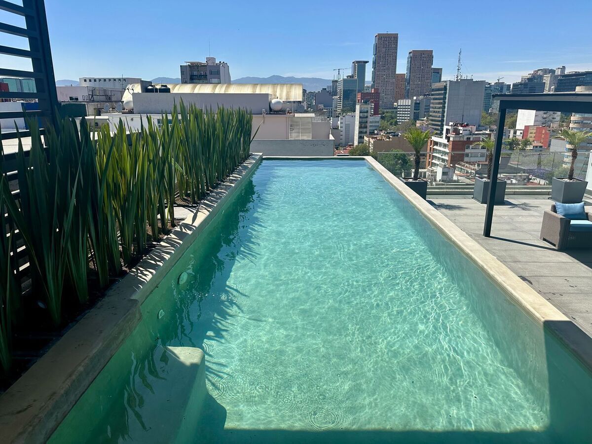 Áreas comunes: alberca, Roof Garde con asador, gimnasio, salón de fiestas, sauna, vapor, Business Center, elevador, Valet Parking, vigilancia.