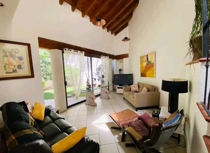 casa en condominio pequeño de solo 5 casas con 250 m2 de terreno y 290 m2 de construcción cuenta en planta baja con sala con techos doble altura lo que la hace muy fresca, comedor y cocina amplia abierta con barra, recámara con clóset o estudio y baño para visitas, un jardín con terraza, en planta alta tenemos una salita de TV y 3 recámaras bla principal con baño completo y las otras comparten otro baño cuenta con un estacionamiento para 3 autos y en área común alberca con jacuzzi, terraza techada y jardín así como 2 portones eléctricos