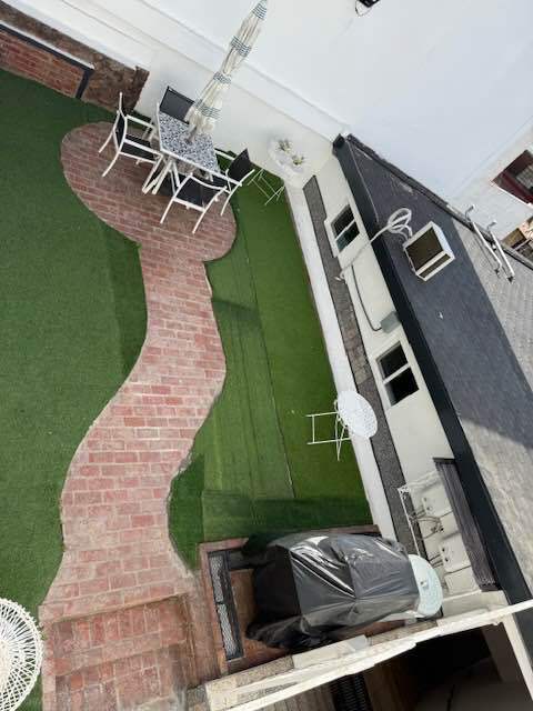 -también ; el uso de áreas comunes Área verde con asador con bancas y mesas con sombrilla.