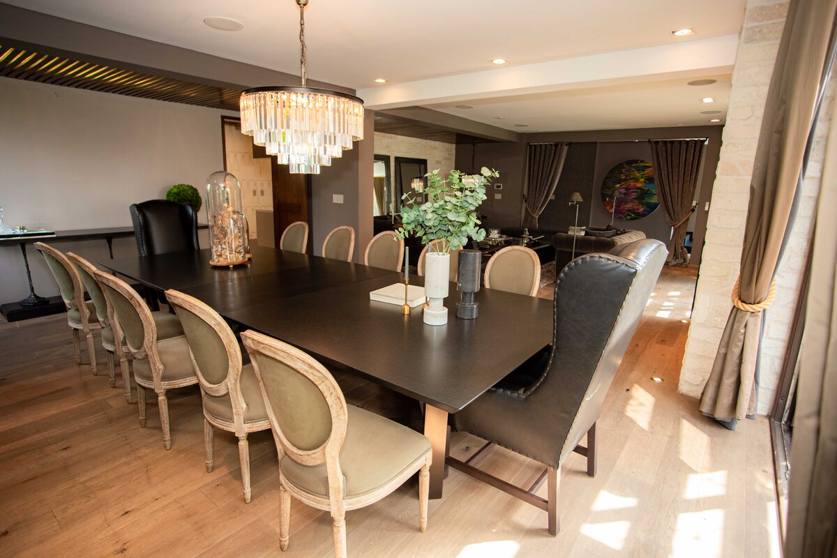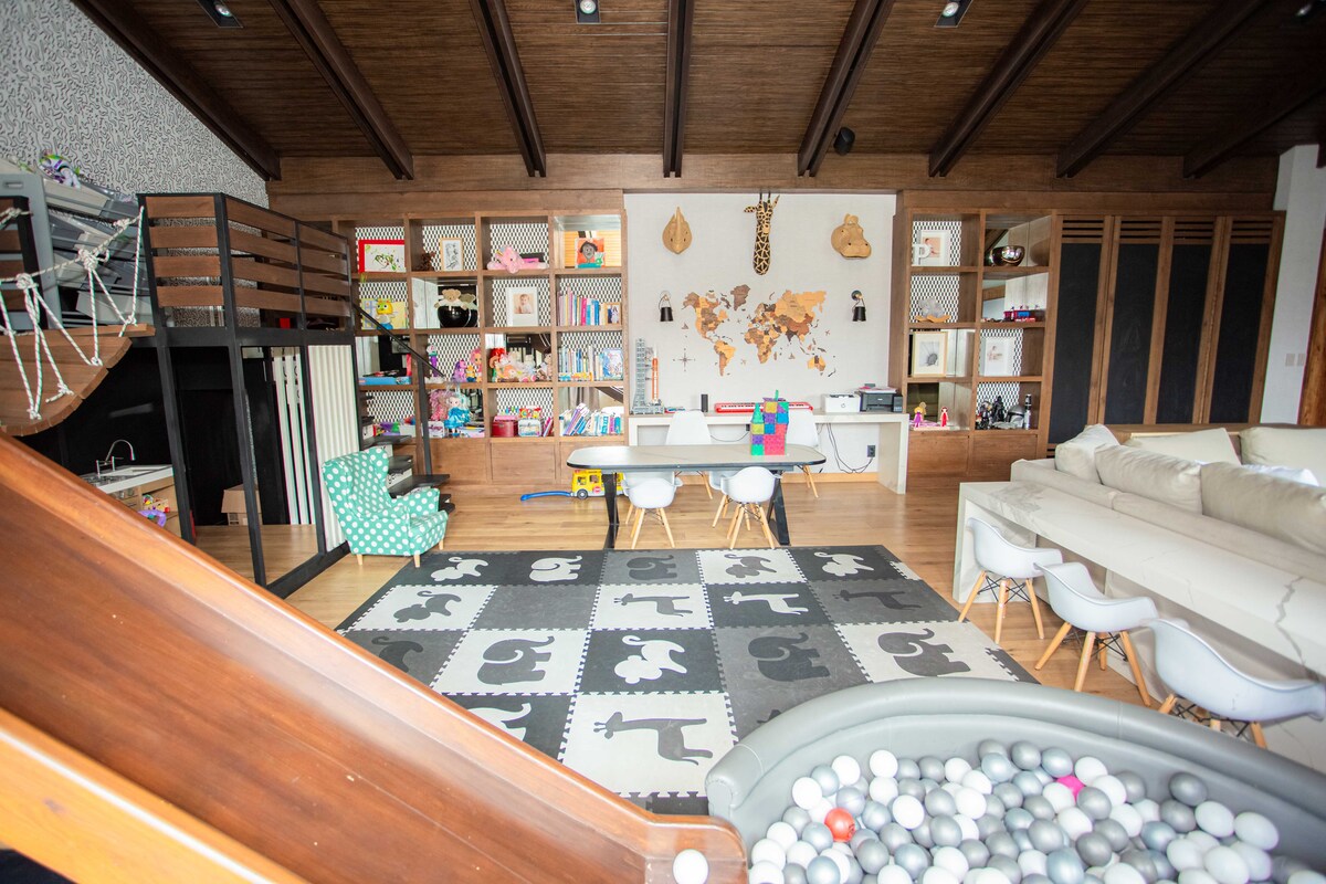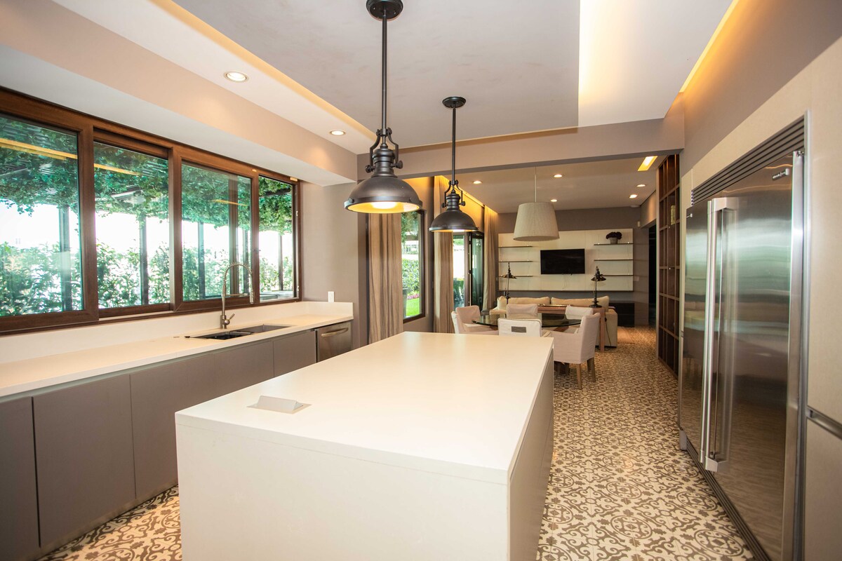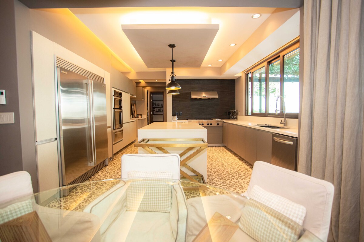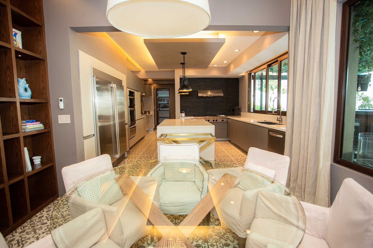 Cuenta con 5 recámaras con vestidor y baño, dos family room, sala, comedor, antecomedor, cocina, bar, dos terrazas, jardín, gimnasio, salón de juegos, cuarto de servicio, cuarto de lavado, bodega y seis lugares de estacionamiento.