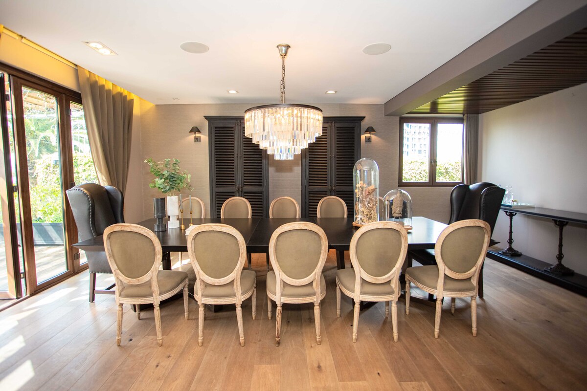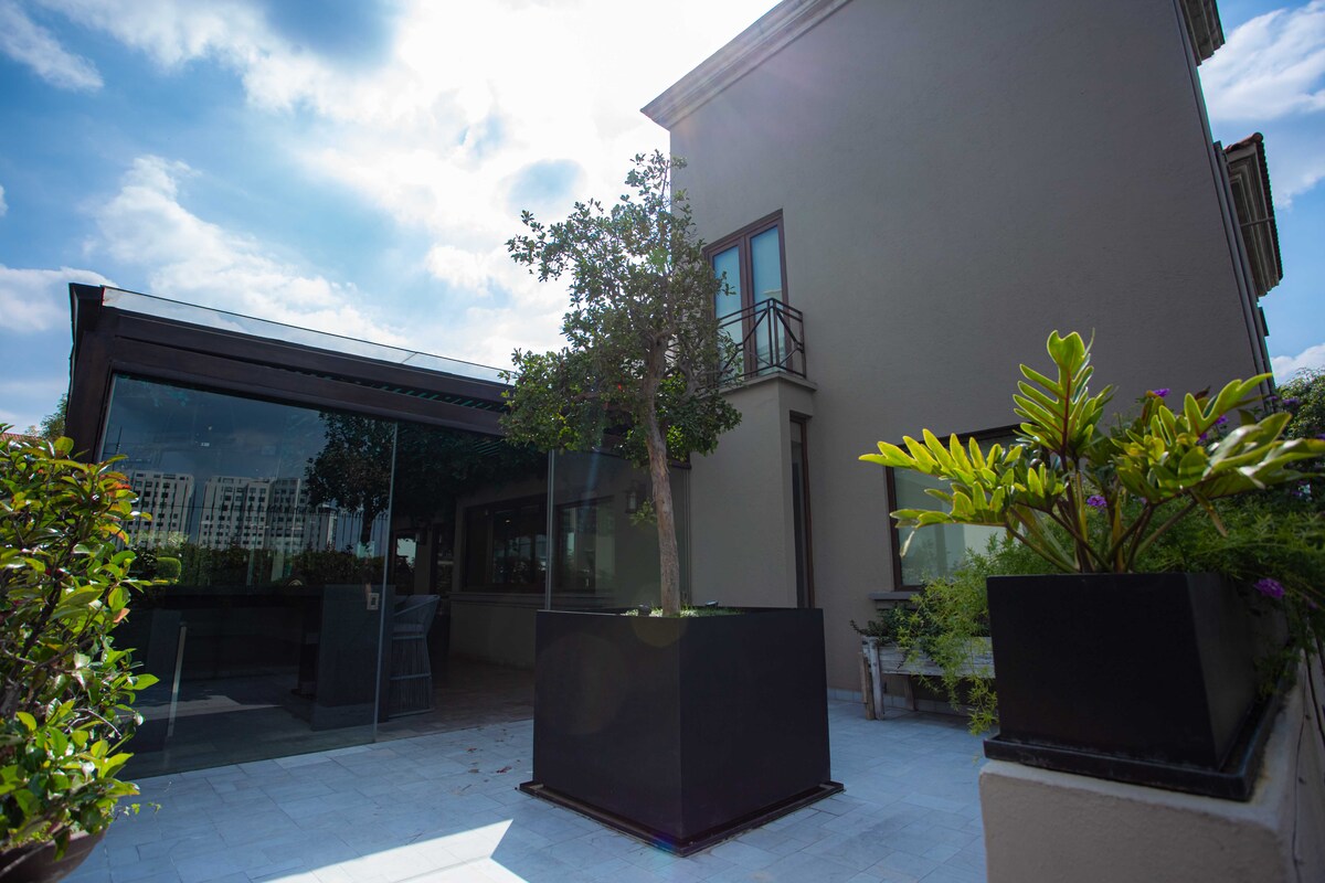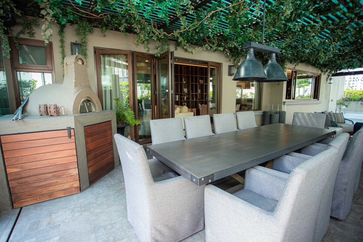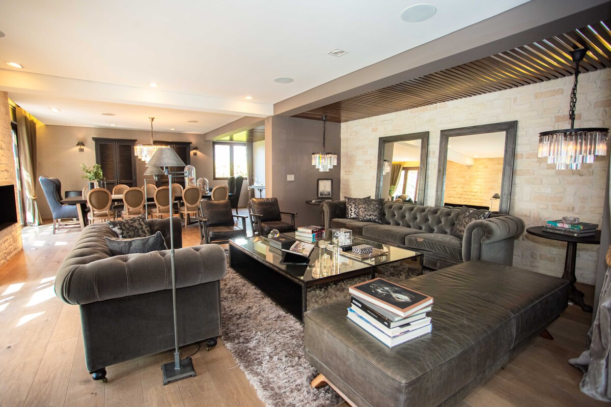 Cuenta con 5 recámaras con vestidor y baño, dos family room, sala, comedor, antecomedor, cocina, bar, dos terrazas, jardín, gimnasio, salón de juegos, cuarto de servicio, cuarto de lavado, bodega y seis lugares de estacionamiento.