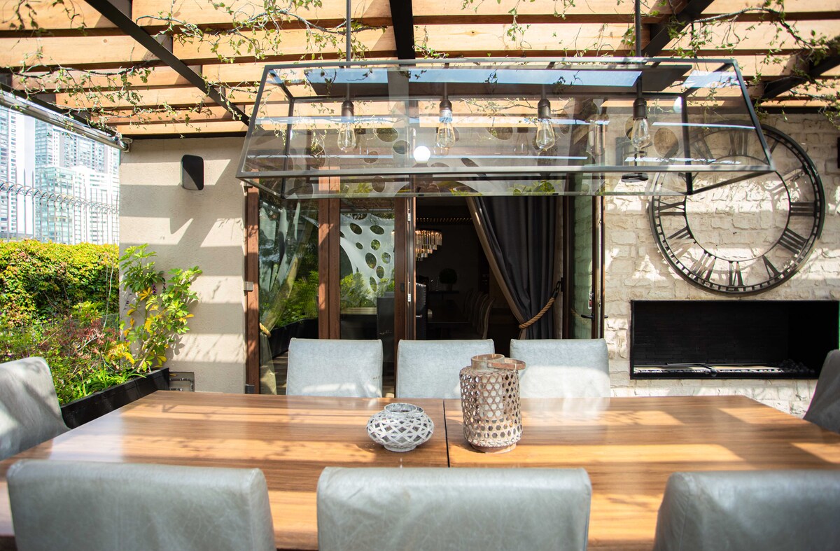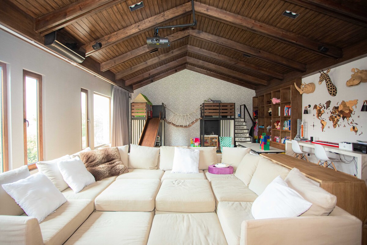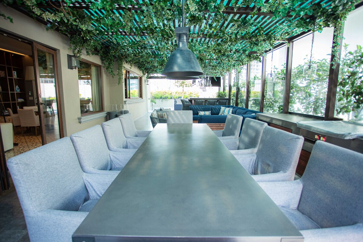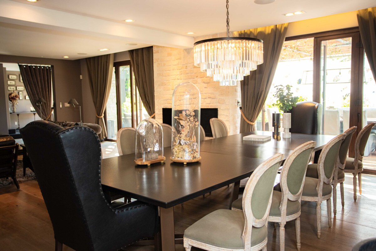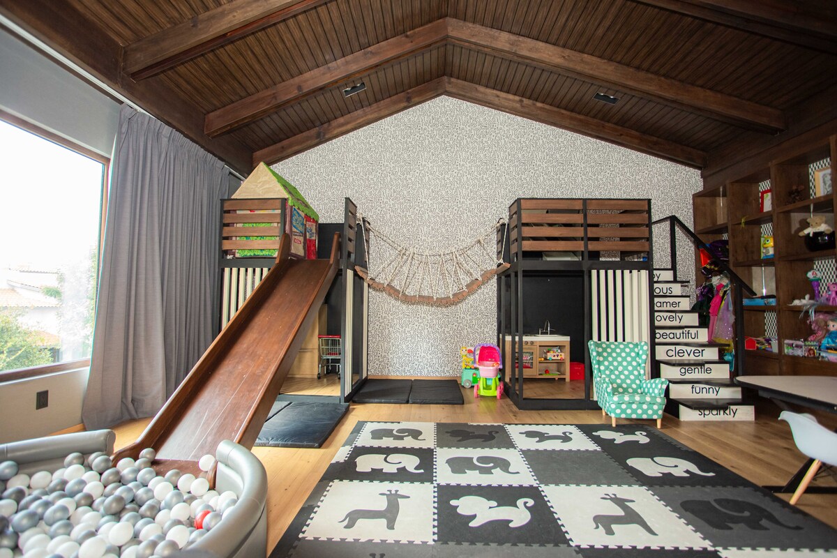 Cuenta con 5 recámaras con vestidor y baño, dos family room, sala, comedor, antecomedor, cocina, bar, dos terrazas, jardín, gimnasio, salón de juegos, cuarto de servicio, cuarto de lavado, bodega y seis lugares de estacionamiento.