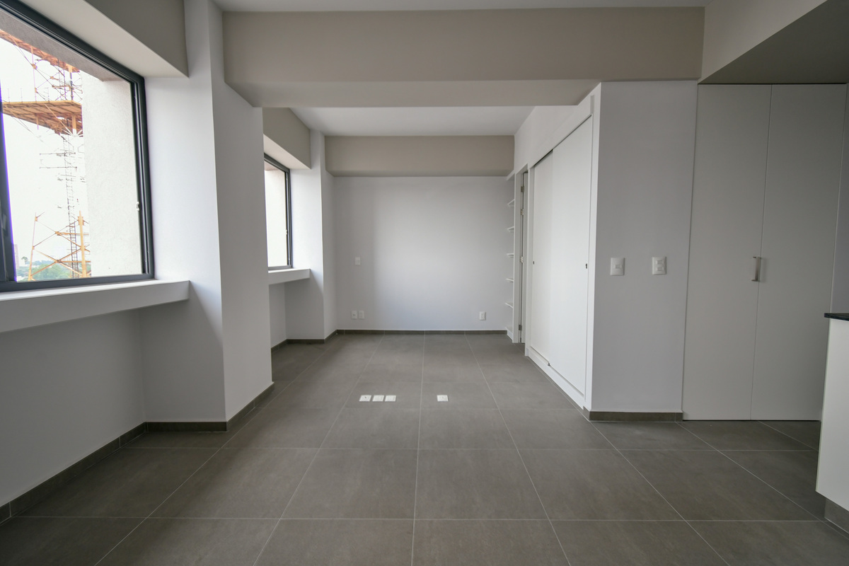 Departamento ubicado en desarrollo de 3 torres que posan en ángulos distintos, buscando dar privacidad. Cuentan con fachada limpia y sobria con el objetivo de resaltar la esbeltez y altura de las torres dando como resultado un aspecto elegante y contundente.