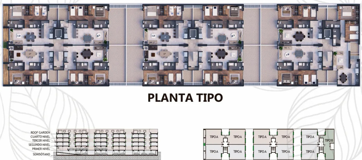 Te interesa invertir en una de las colonias de mayor plusvalía en Benito Juárez? Ven y conoce este excelente proyecto de 38 departamentos distribuidos en 3 torres, desde 76 hasta 93 m2 habitables. Cuenta con gym, vigilancia 24 hrs y CCTV, bodegas, roof garden común y privado.