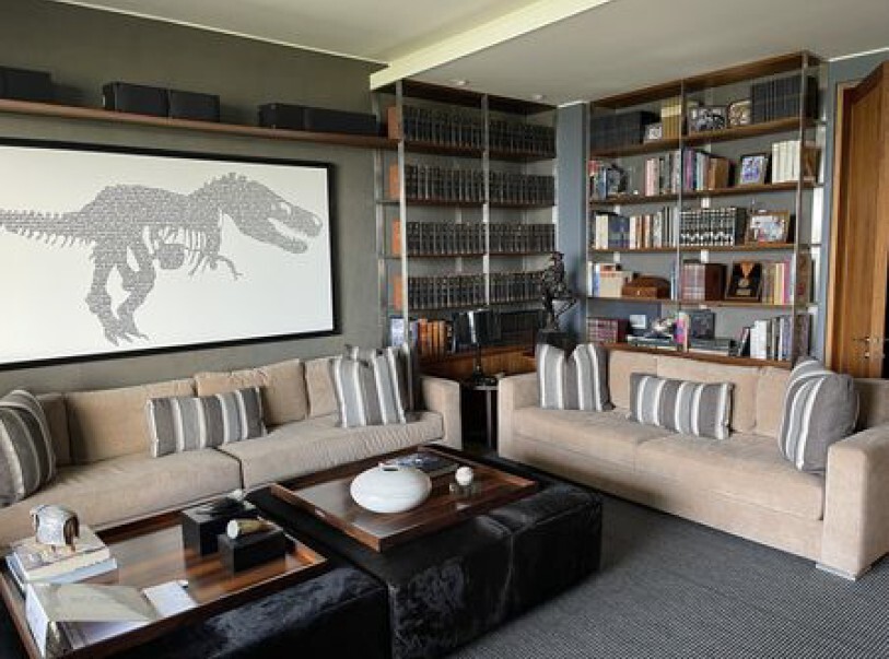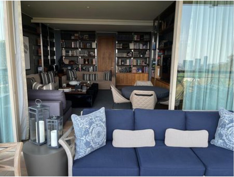 La sala es muy amplia y cuenta con vista espectacular. Se conecta con el comedor y una elegante biblioteca, que pueden integrarse en un solo espacio abierto o mantenerse independientes según la ocasión. Tanto la sala como la biblioteca tienen acceso a una gran terraza, que puede abrirse o cerrarse, ideal para disfrutar de la vista y reuniones sociales.