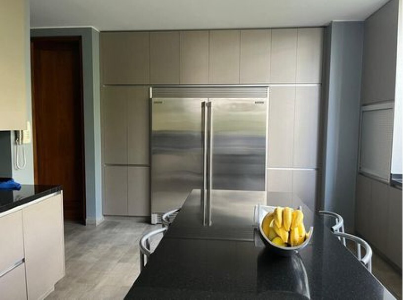 La cocina está excelentemente equipada, con mucho espacio para guardar y un amplio pantry. El área de servicio cuenta con dos cuartos de servicio, un baño y área de lavado funcional.