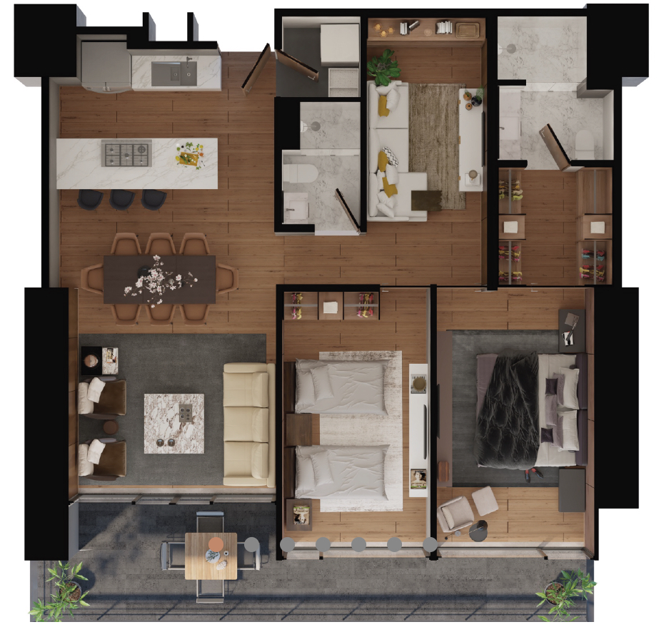 Descubre este elegante departamento de 131 m², perfectamente distribuido para ofrecer confort y funcionalidad en cada espacio.
