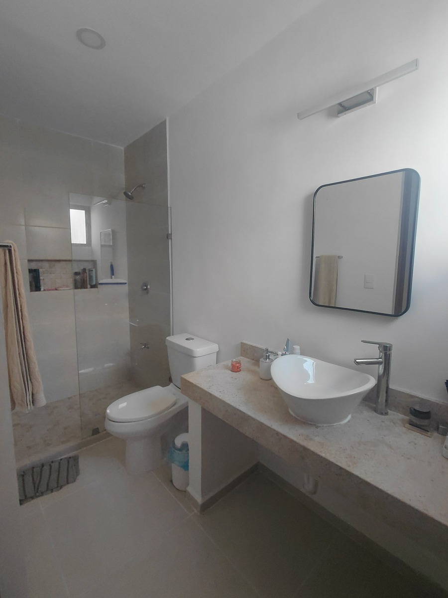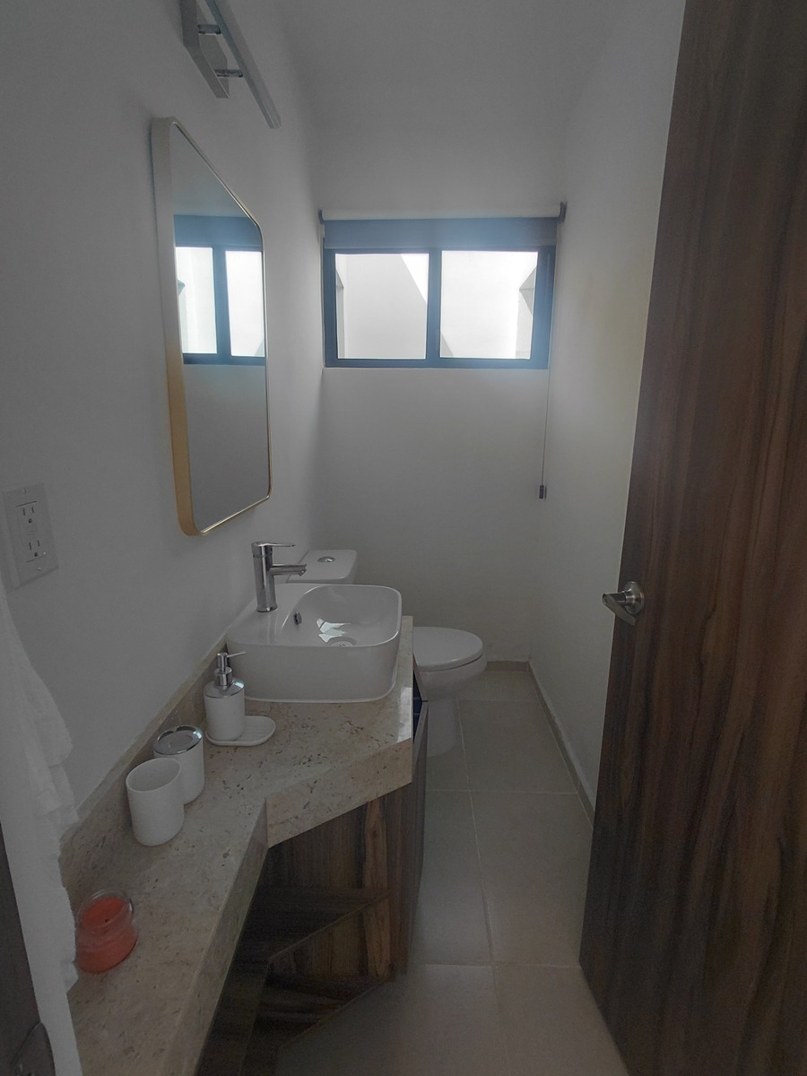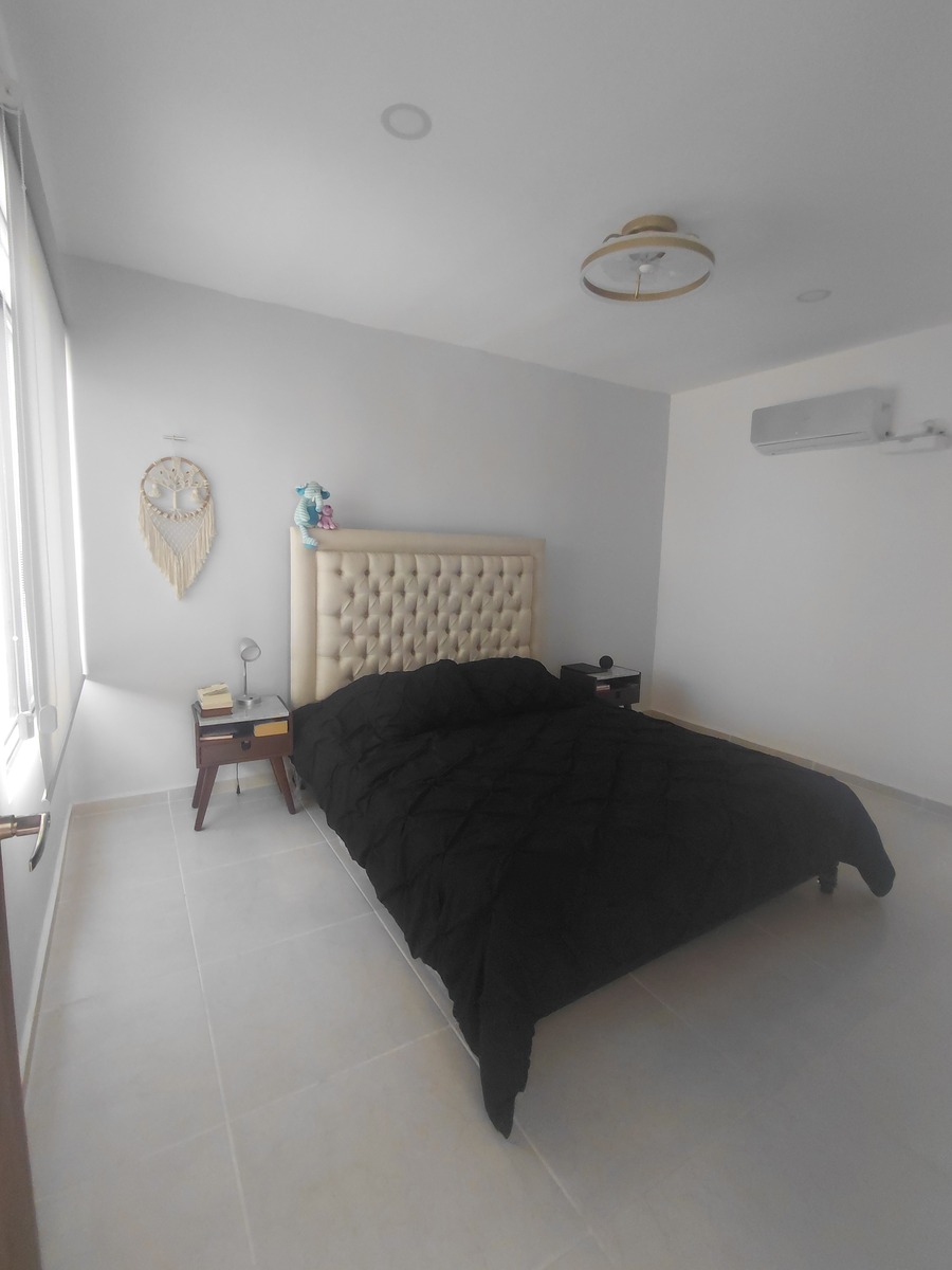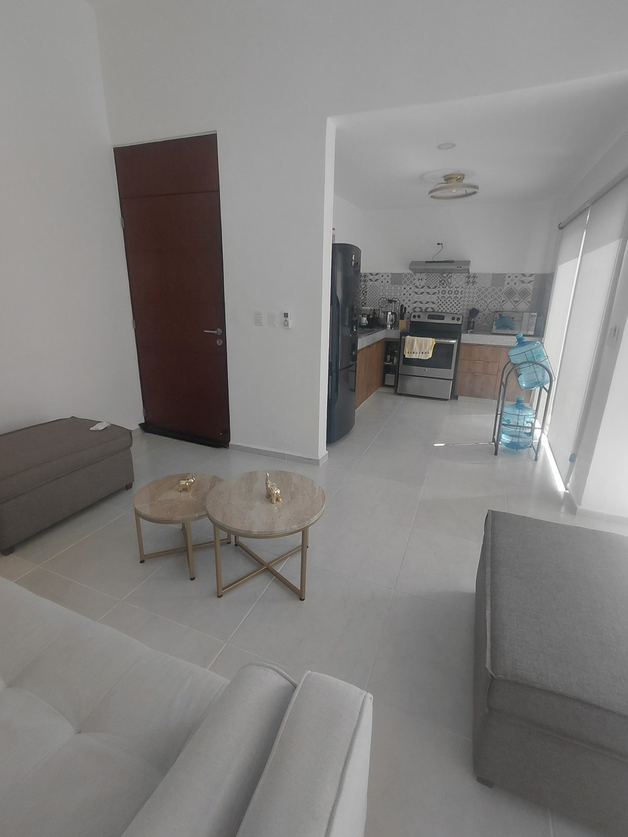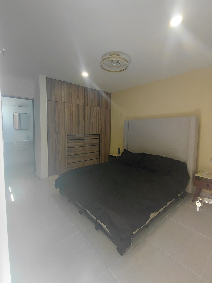 -Cama queen con base y cabecera en habitación principal Cama queen con base y cabecera en habitación secundaria -Closet vestidor completo en habitación principal Closet completo en habitación secundaria -Boiler eléctrico de 30 litros automático -Lavadora y secadora -Estufa eléctrica -Refrigerador de lujo -Microondas, campana de cocinay adicionales incluidos -Mesa de comedor redondaa con 4 silas