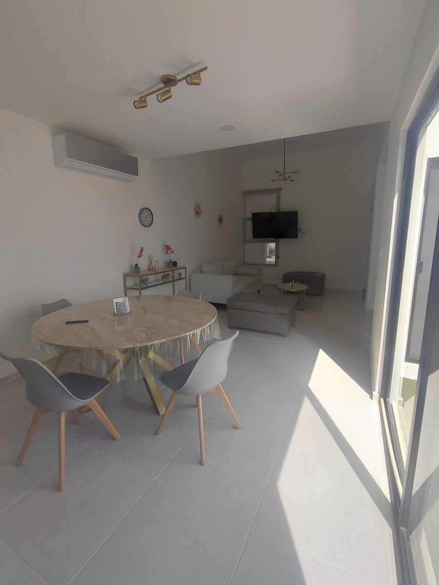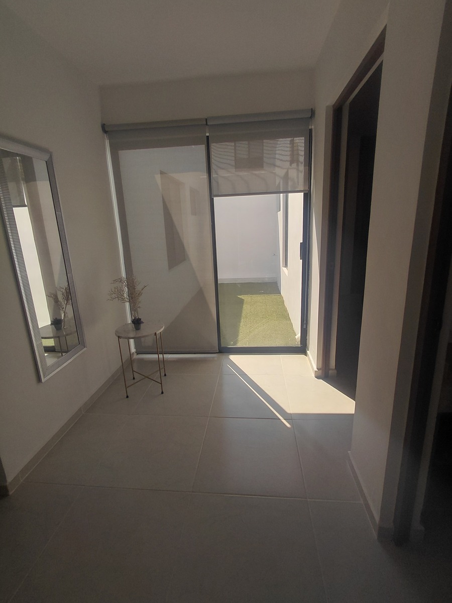 -Sala de 3 piezas, con juego de mesas -TV en sala -Doble persiana en cuarto principal de privacidad y black-out -Persiana black-out en cuarto secundario -Persiana de privacidad en cocina y sala -Suavizador de agua residencial automático -Hidroneumático en cisterna a tinaco -Presurizador de tinaco a casa -2 aires inverter 1 en habitación principal y otro en sala -1 aire alta eficiencia en habitación secundaria -Pelicula protectora de nano carbono en todas las ventanas que protegen 100% el uy -Mosquiteros en todas las ventanas y cinta bota agua de aluminio -Cochera con instalación para motor eléctrico para -Focos led y con sensor de movimiento en cochera -Pasto sintético en terraza, jardin y pasillos. -Baños con cancel fijo de cristal y espejos. ⁃Decoración en sala, comedor, cocina y habitaciones.