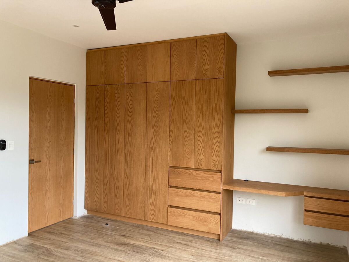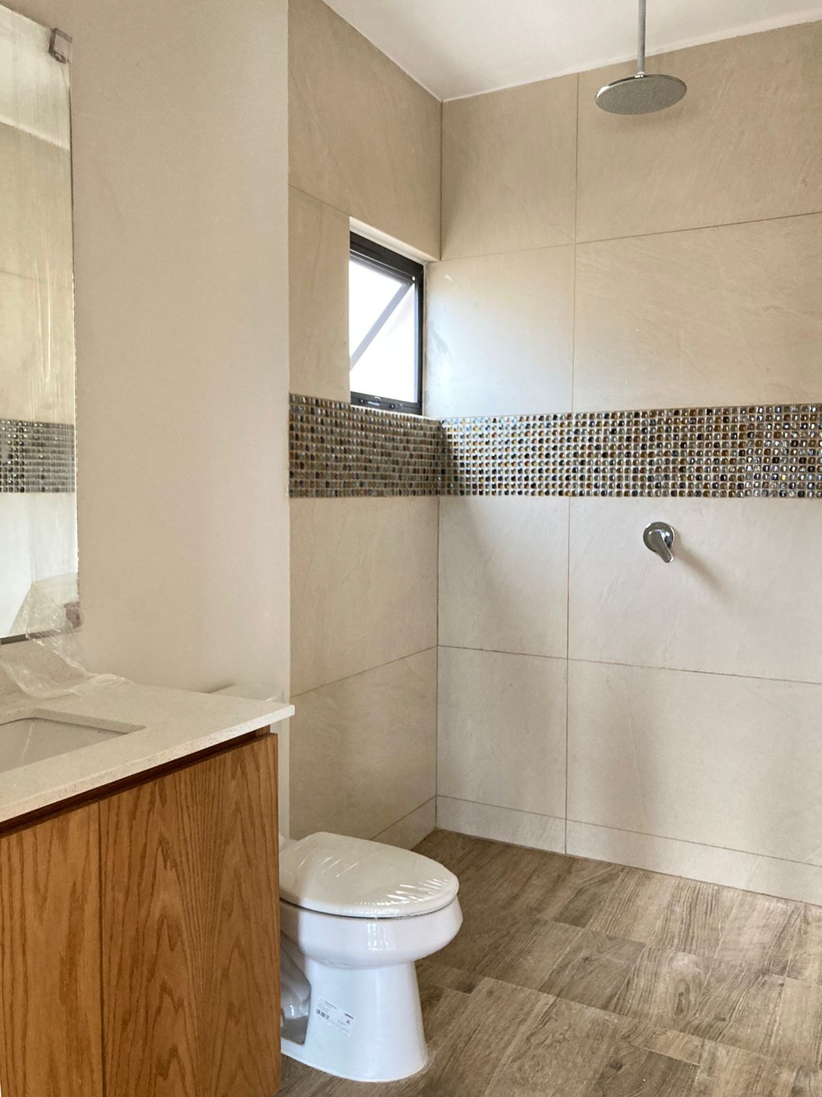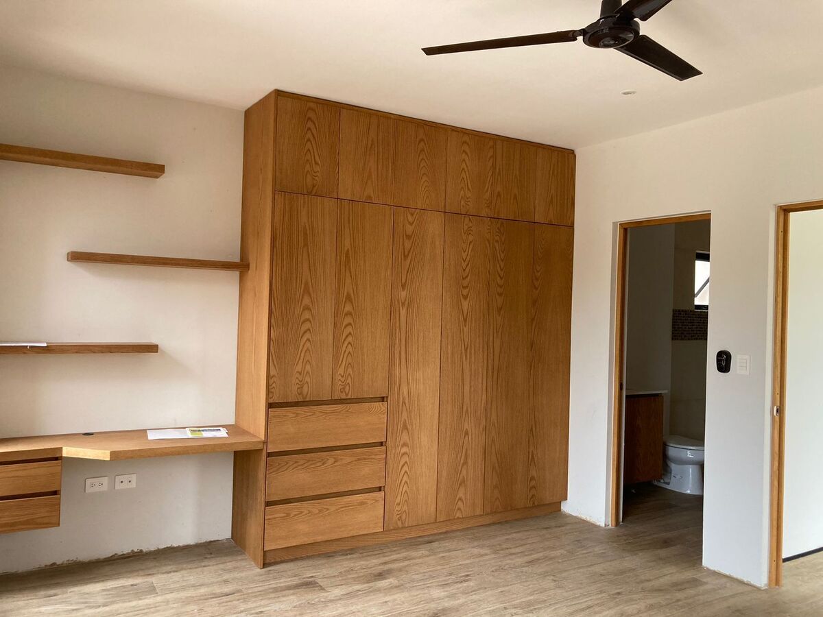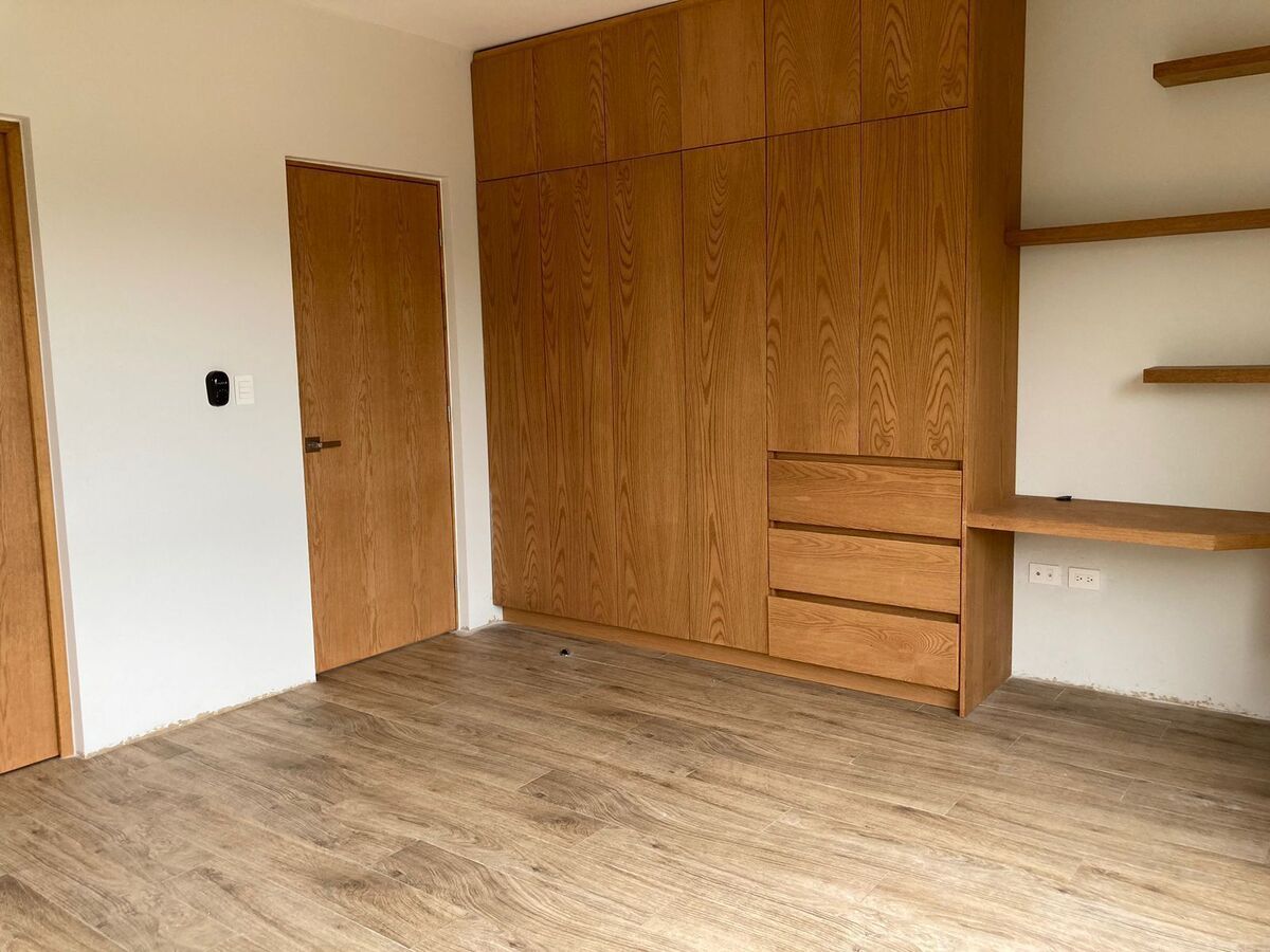Habitación principal con baño completo con doble lavabo, closet vestidor