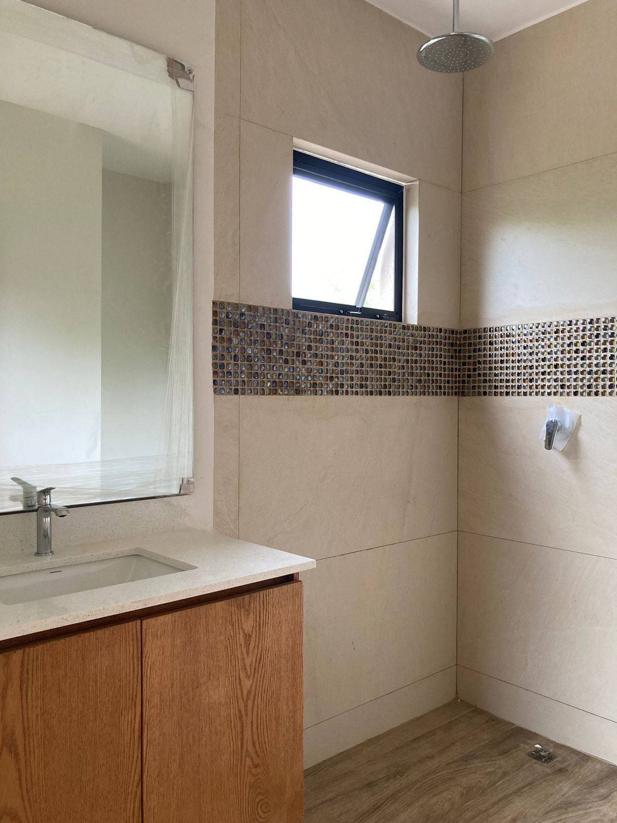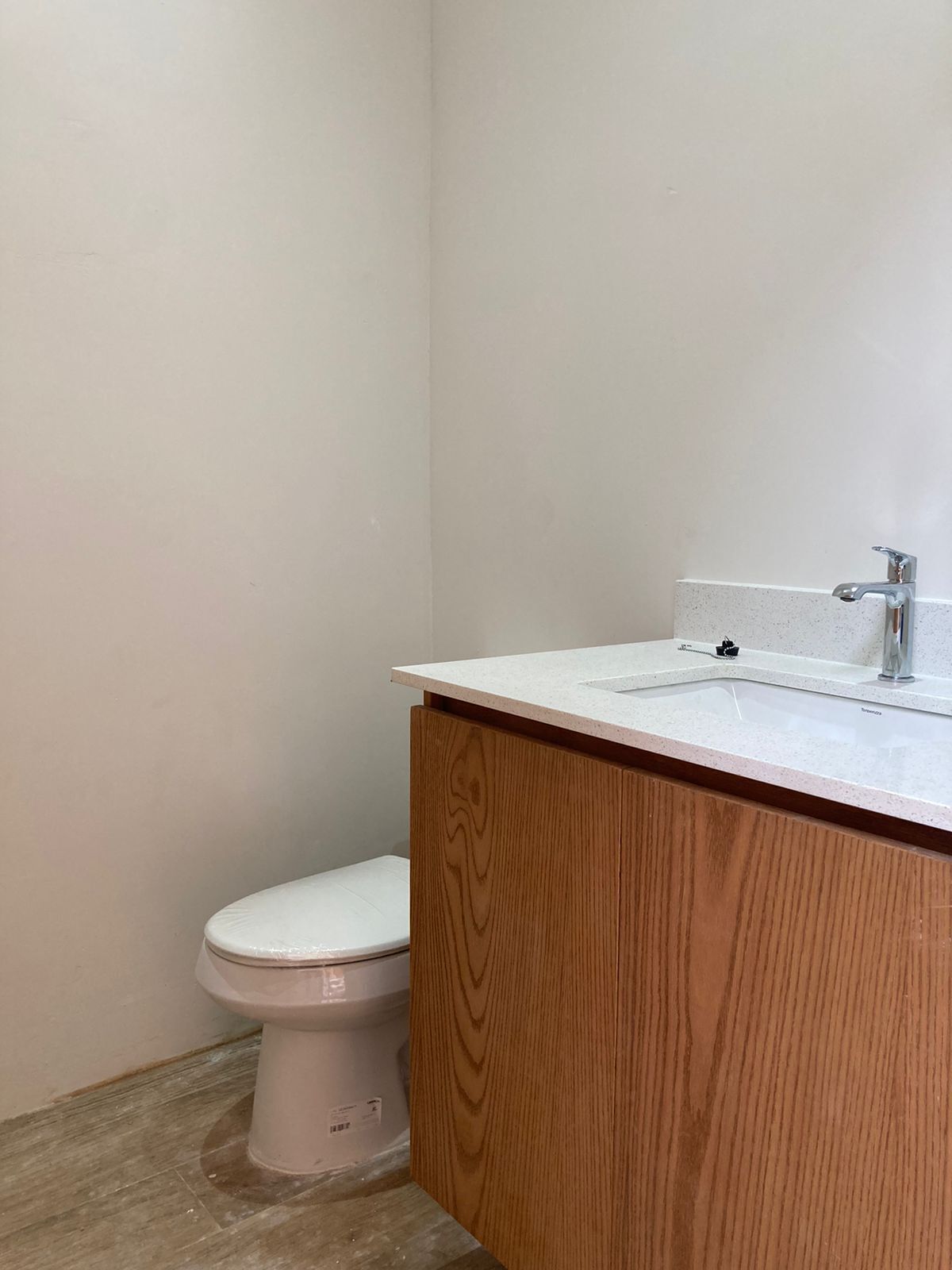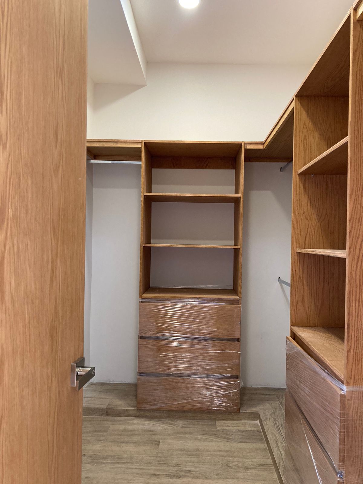 Habitación principal con baño completo con doble lavabo, closet vestidor