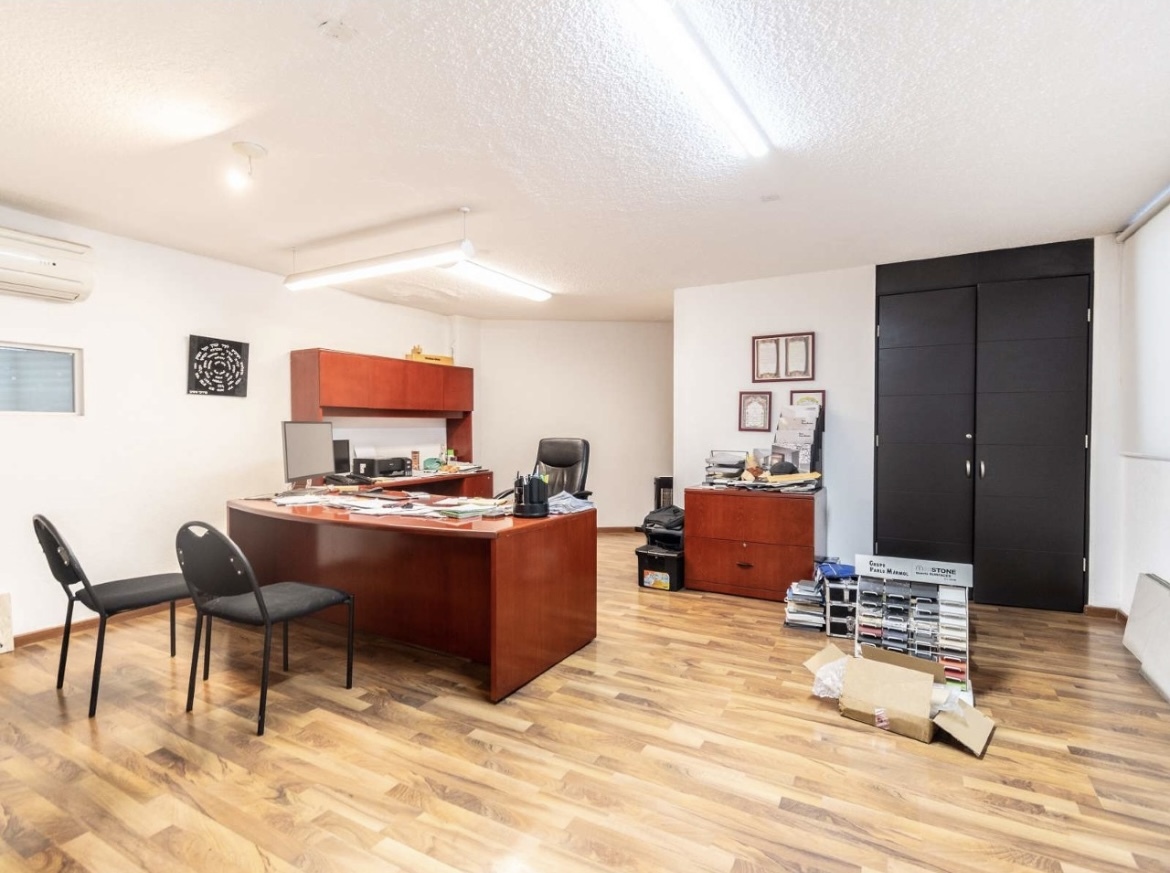 La bodega cuenta con oficinas integradas para el personal administrativo, así como baños para comodidad del equipo de trabajo. Dispone de un estacionamiento amplio para facilitar el acceso tanto de vehículos de carga como de empleados.