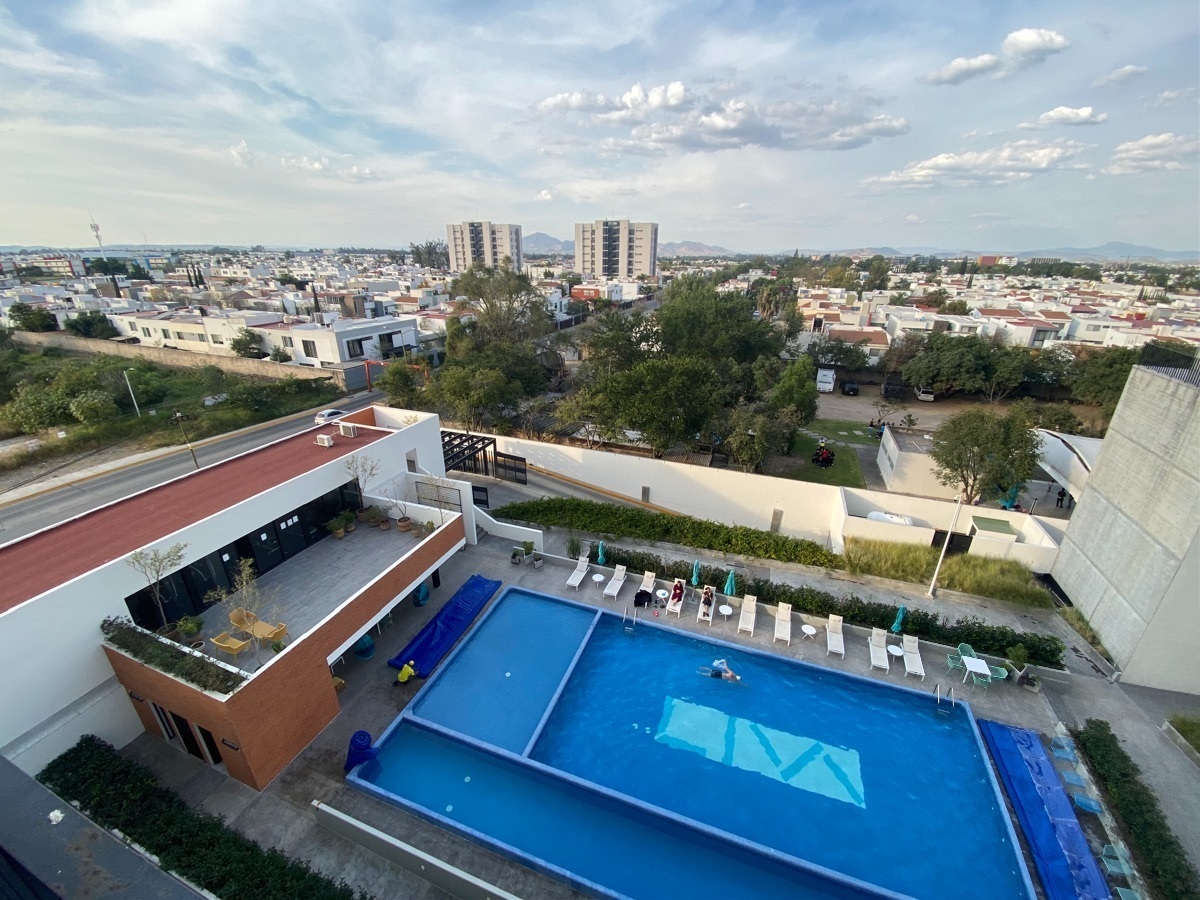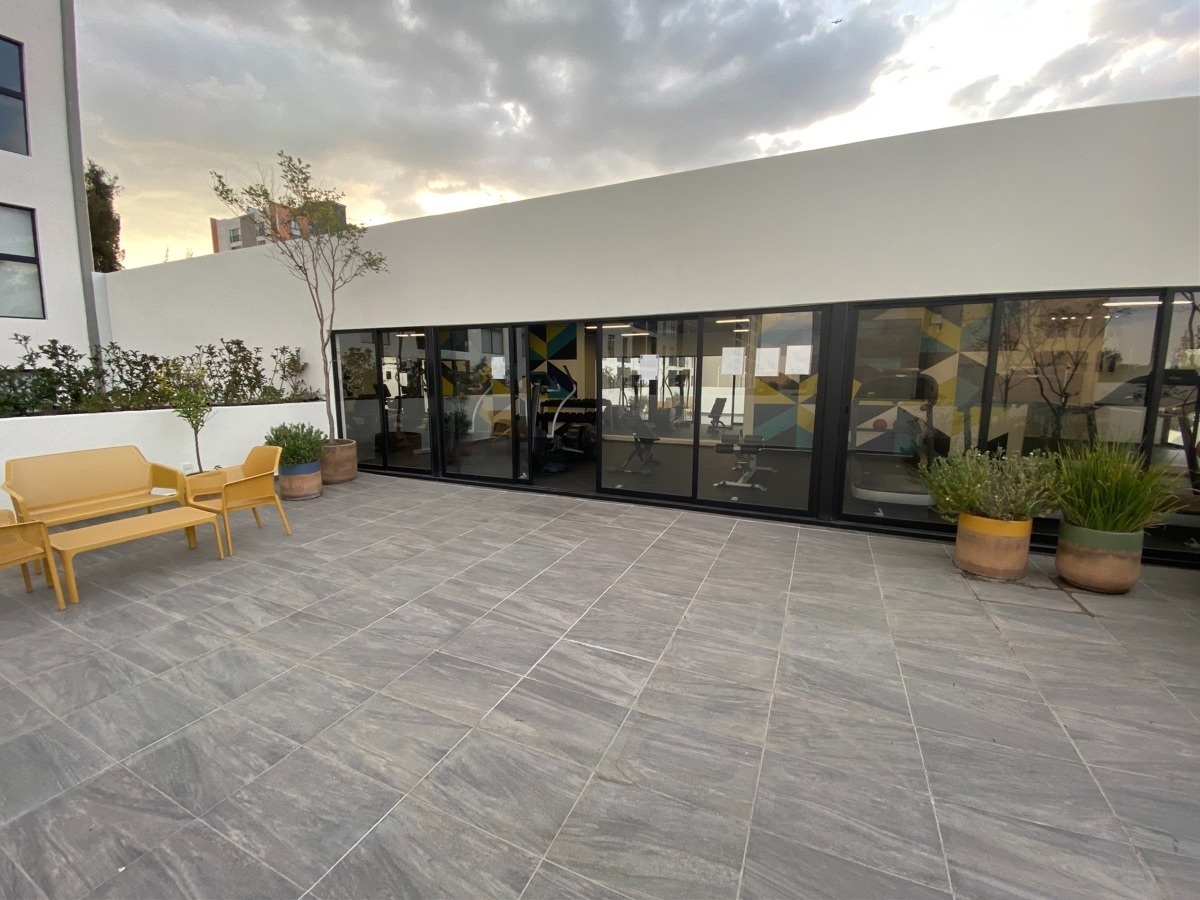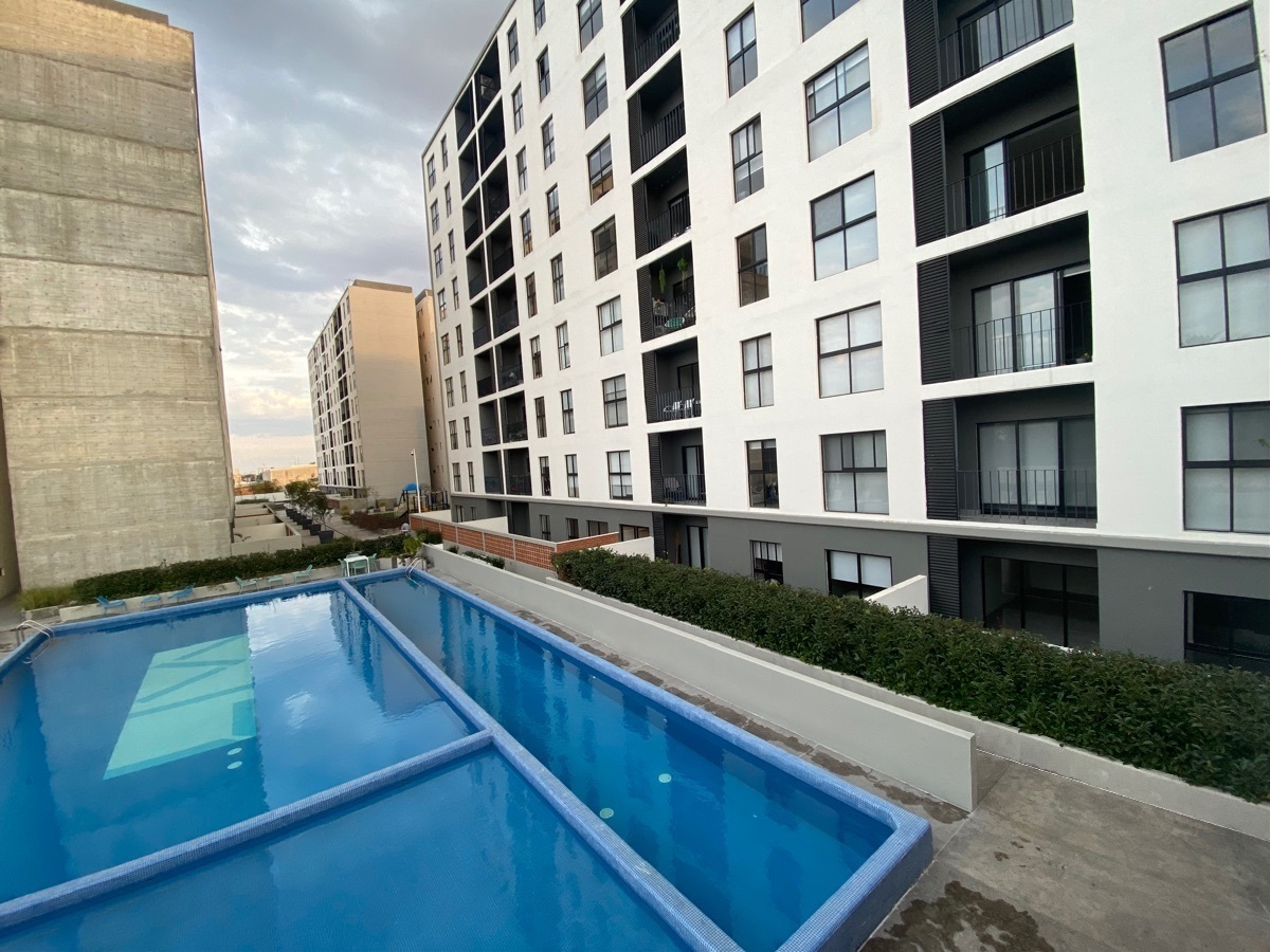 Departamento en planta baja con excelente ubicación, en Solares, 101 M2 más terraza de 49 M2, 2 recámaras, estudio que puede ser tercera habitación (como el de las imágenes), 2 baños completos, área de lavado, cocina con barra de granito, pisos de porcelanato, estacionamiento para 2 autos. Cercano a los mejores colegios, universidades y zonas comerciales. El desarrollo cuenta con acceso controlado, alberca con chapoteadero y carril de nado, gimnasio, 3 terrazas, área para mascotas, fogatero.
