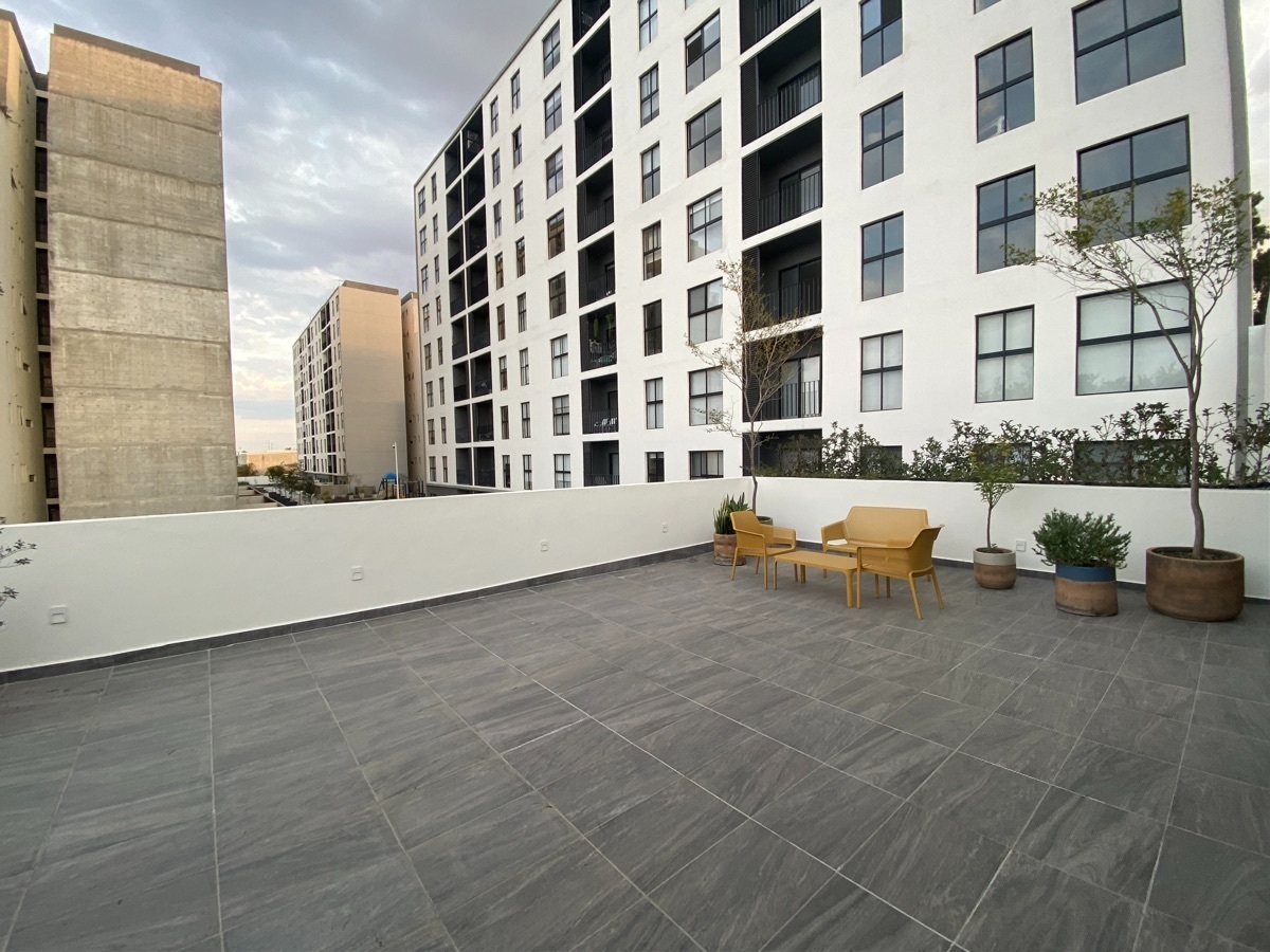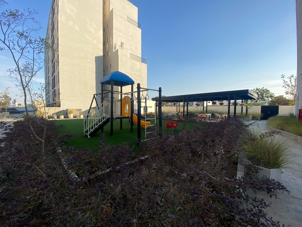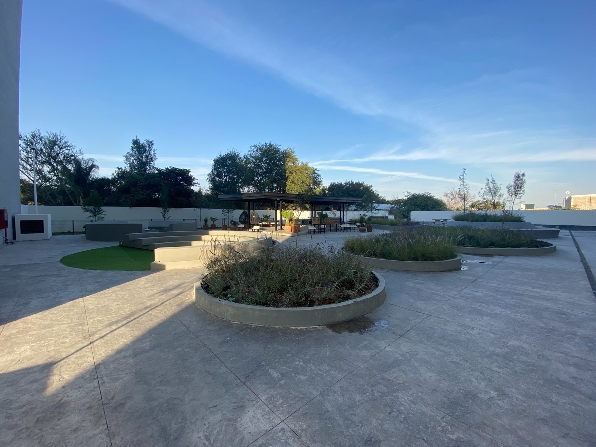 Departamento en planta baja con excelente ubicación, en Solares, 101 M2 más terraza de 49 M2, 2 recámaras, estudio que puede ser tercera habitación (como el de las imágenes), 2 baños completos, área de lavado, cocina con barra de granito, pisos de porcelanato, estacionamiento para 2 autos. Cercano a los mejores colegios, universidades y zonas comerciales. El desarrollo cuenta con acceso controlado, alberca con chapoteadero y carril de nado, gimnasio, 3 terrazas, área para mascotas, fogatero.