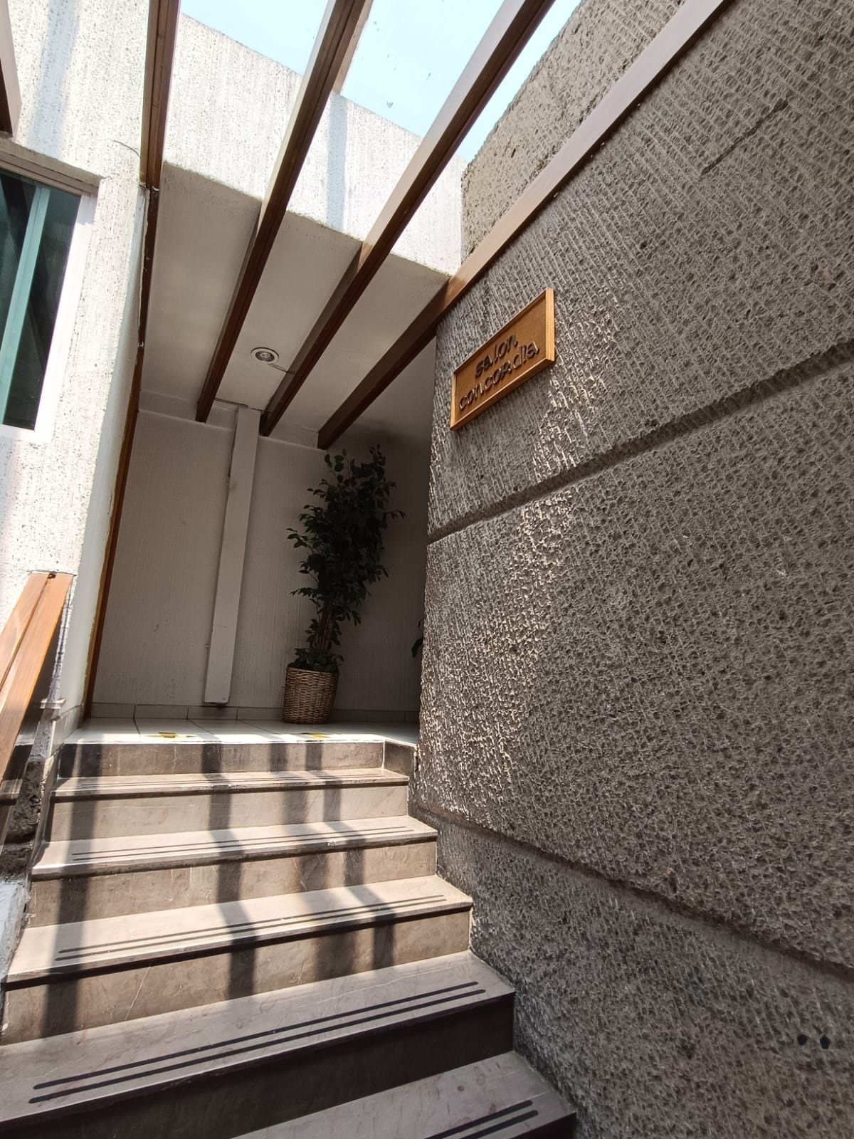 Escalera con pérgola y domo de cristal