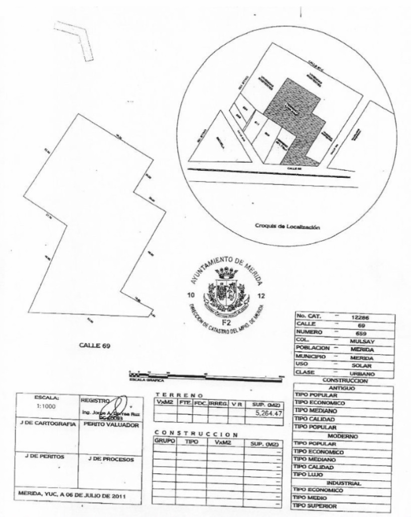 Terreno dentro de Mérida en VENTA en Colonia Mulsay de 5,265.47 m2, sobre una avenida recién construida calle 69 diagonal con carriles de Va y Ven ,con ubicación ideal para desarrollo industrial, comercial, habitacional, cerca de avenidas primarias a 170 metros con circuito colonia, Avenida Juan Pablo II a 600 metros, avenida Itzaes a 800 metros, Avenida Mérida 2000 a 2 kms.