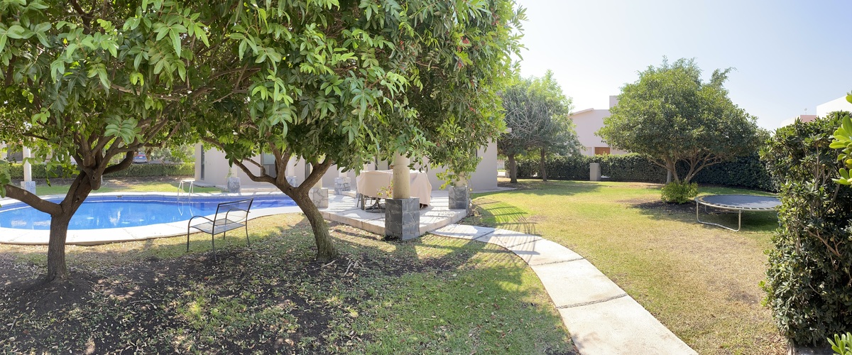 Cuenta con amplio jardín. El estacionamiento techado tiene capacidad para dos vehículos y tiene opción para un tercer auto.