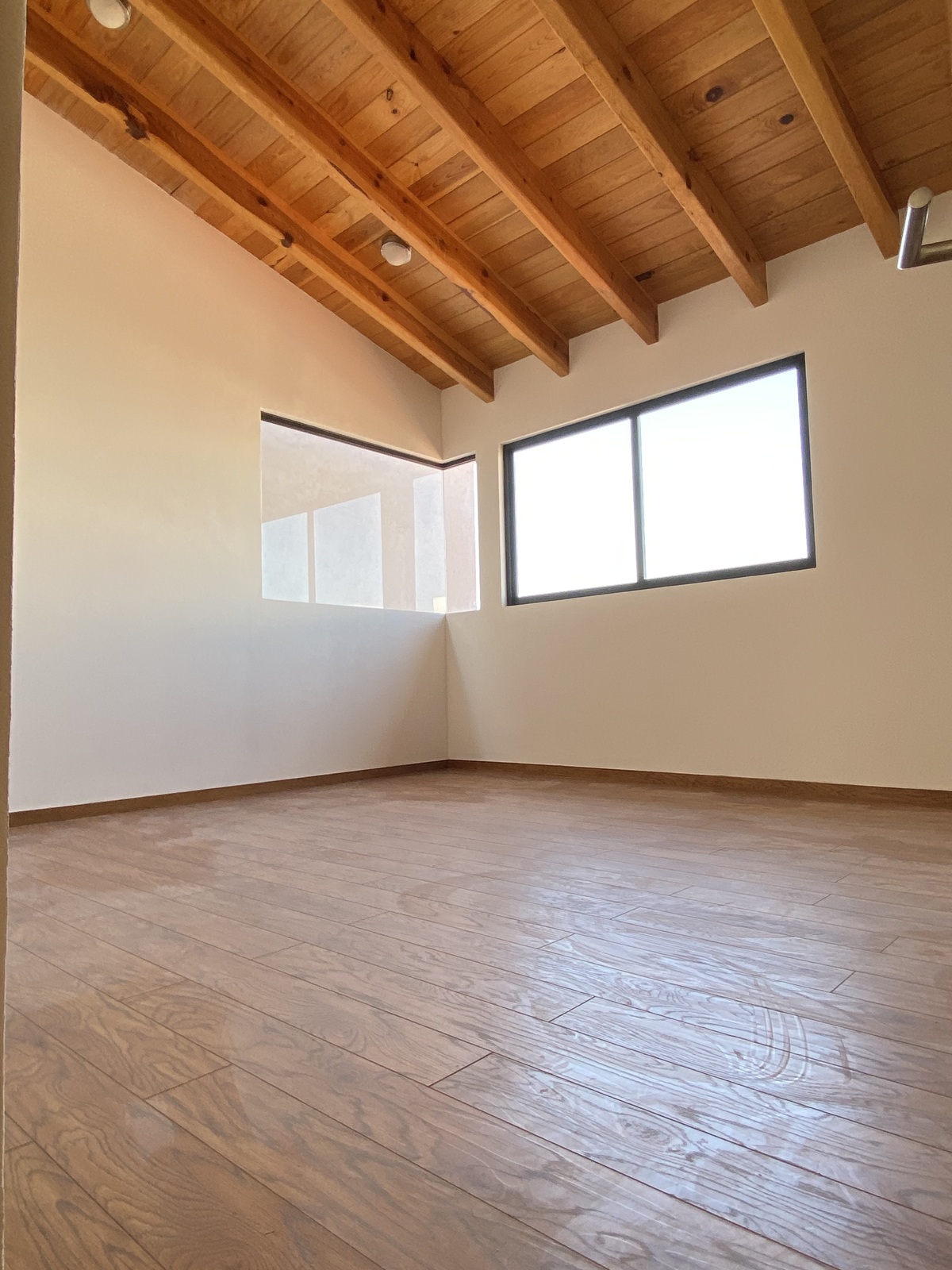 En la planta alta, la propiedad ofrece tres amplias recámaras, todas con baño propio y vestidor. También cuenta con una sala de TV o estudio, ofreciendo un