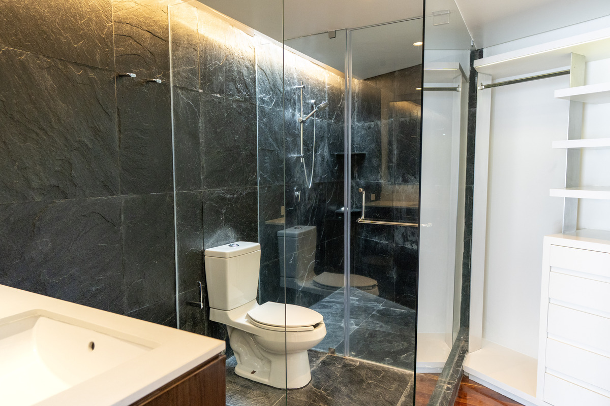 •⁠ Suite principal con vestidor de diseño y doble baño tipo spa con tina Villeroy & Boch, ideal para el descanso absoluto.