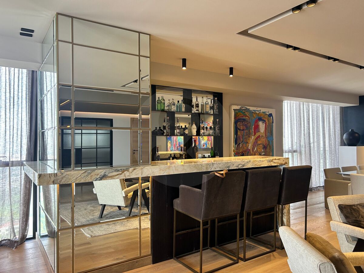 Los acabados de primer nivel, el mobiliario contemporáneo y las piezas de arte cuidadosamente seleccionadas realzan el carácter sofisticado de la propiedad. La paleta neutra y los detalles en mármol, madera y metal crean un ambiente cálido y a la vez vanguardista.
