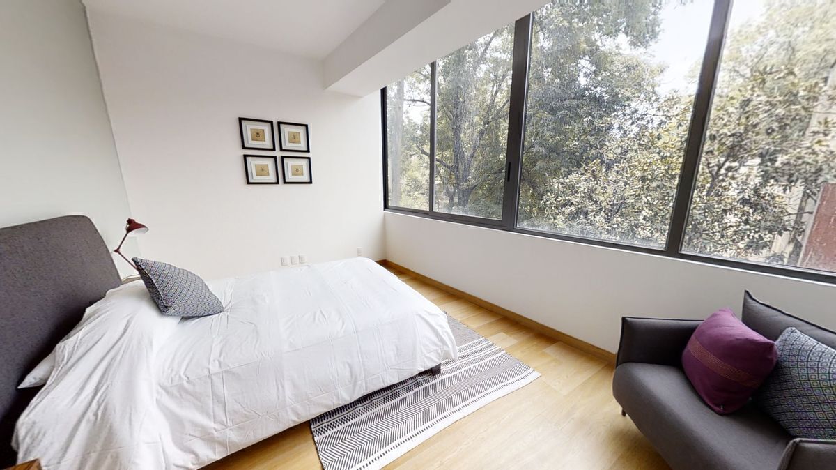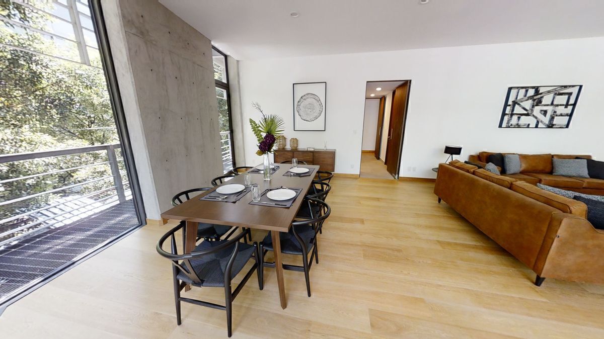 Este proyecto arquitectónico es una verdadera obra maestra, creado por los reconocidos arquitectos Alejandro Bernardi y Beatriz Peschard. El departamento ofrece vistas impresionantes de la Ciudad de México y sus exuberantes áreas verdes.