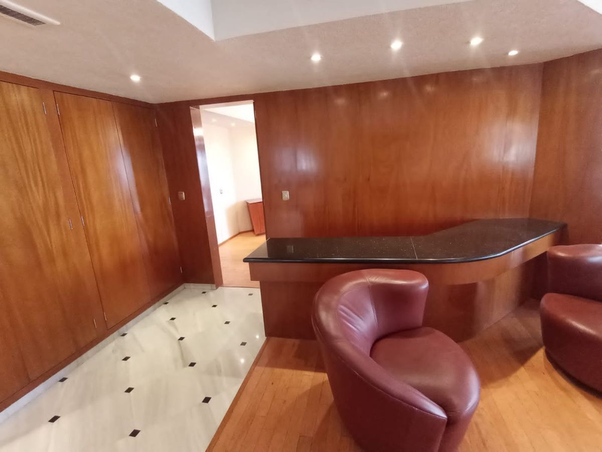 Disfruta de los 430 mts habitables más 12 mts de Terraza. Accede a tu departamento por medio de un Lobby, con acceso al elevador que te lleva directamente al vestíbulo; se encuentra completamente iluminado con una vista panorámica, excepcional. En el recibidor un medio baño y closet. El departamento consta de 3 Recámaras, la principal cuenta con Walking Closet, jacuzzi y baño completo; las otras dos habitaciones cuentan con baño completo y closet; un amplio antecomedor, sala, comedor; amplia cocina, un cuarto para oficina o Cuarto de Tareas, área family; lavandería, cuarto de servicio con baño completo. Cuenta con 6 lugares de estacionamiento.