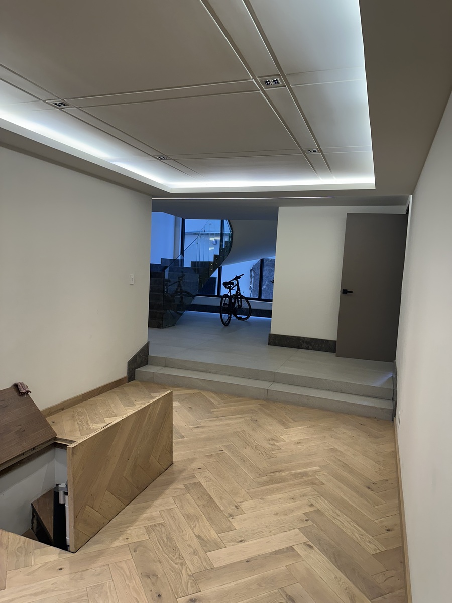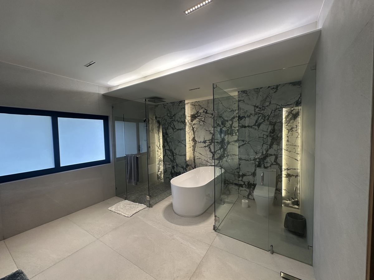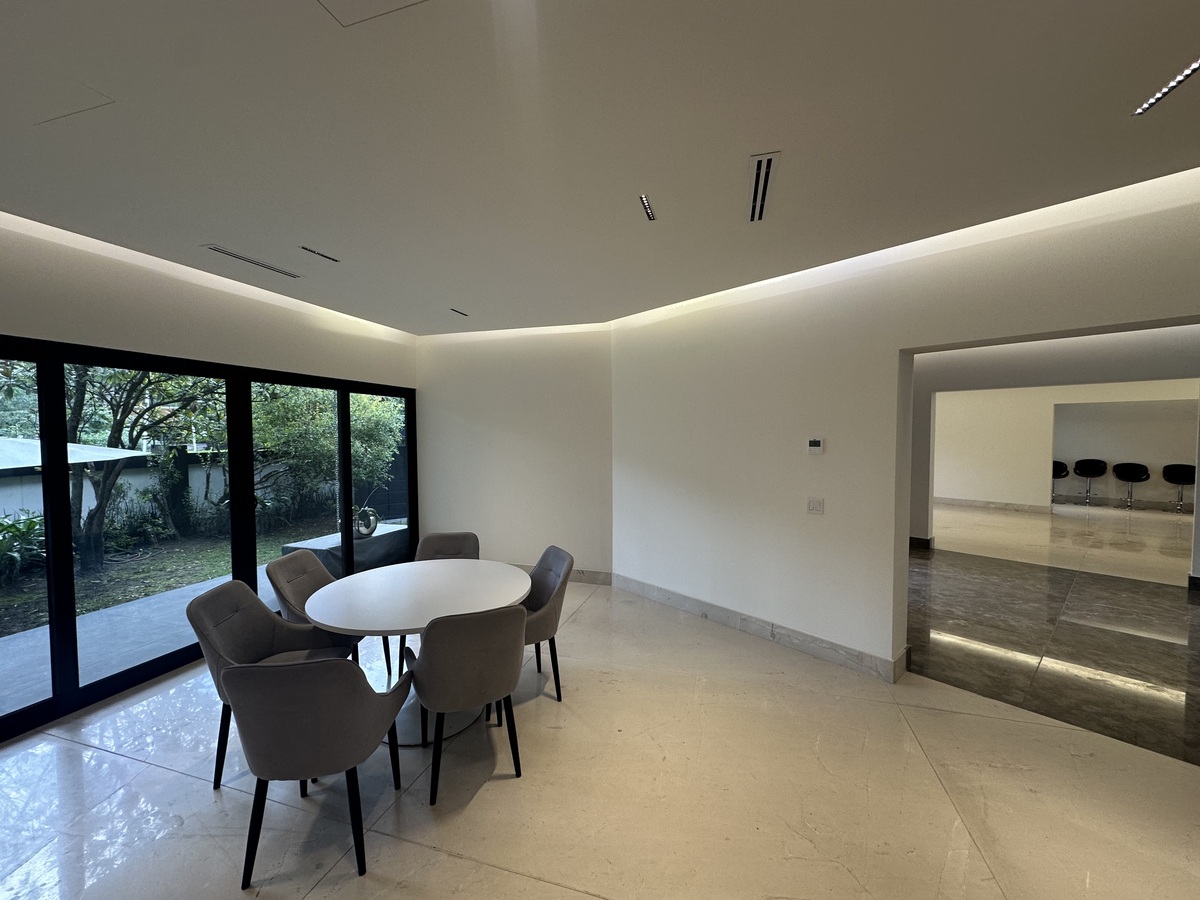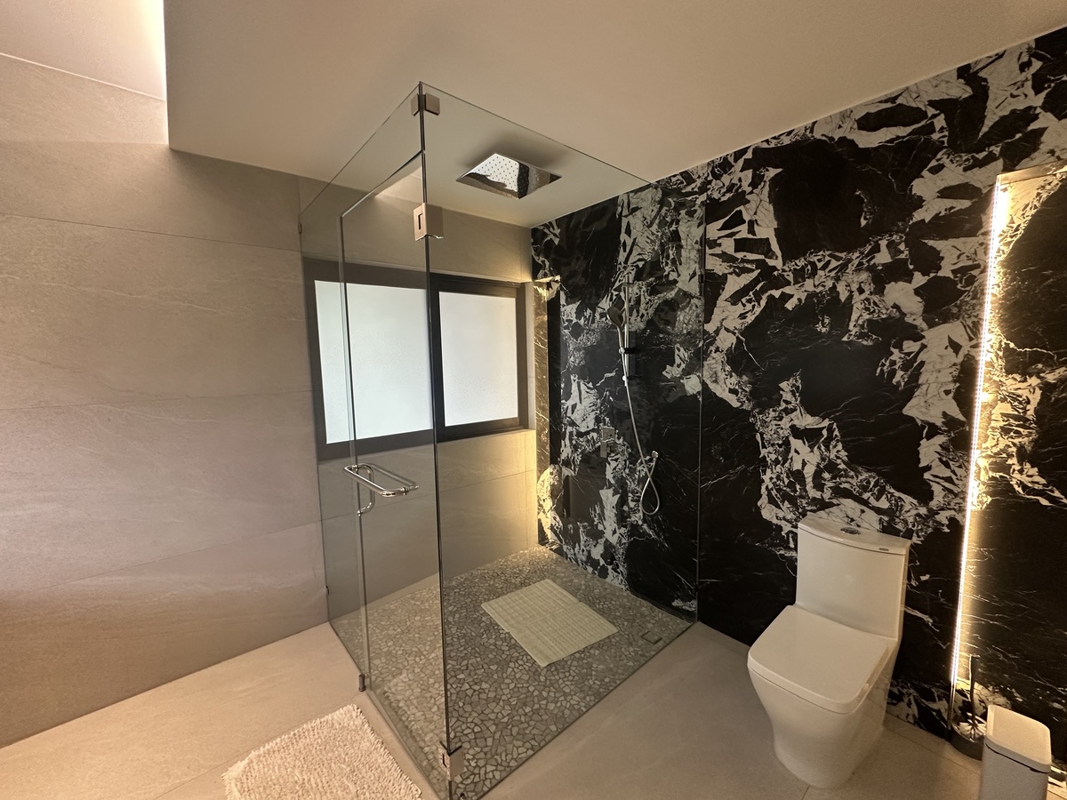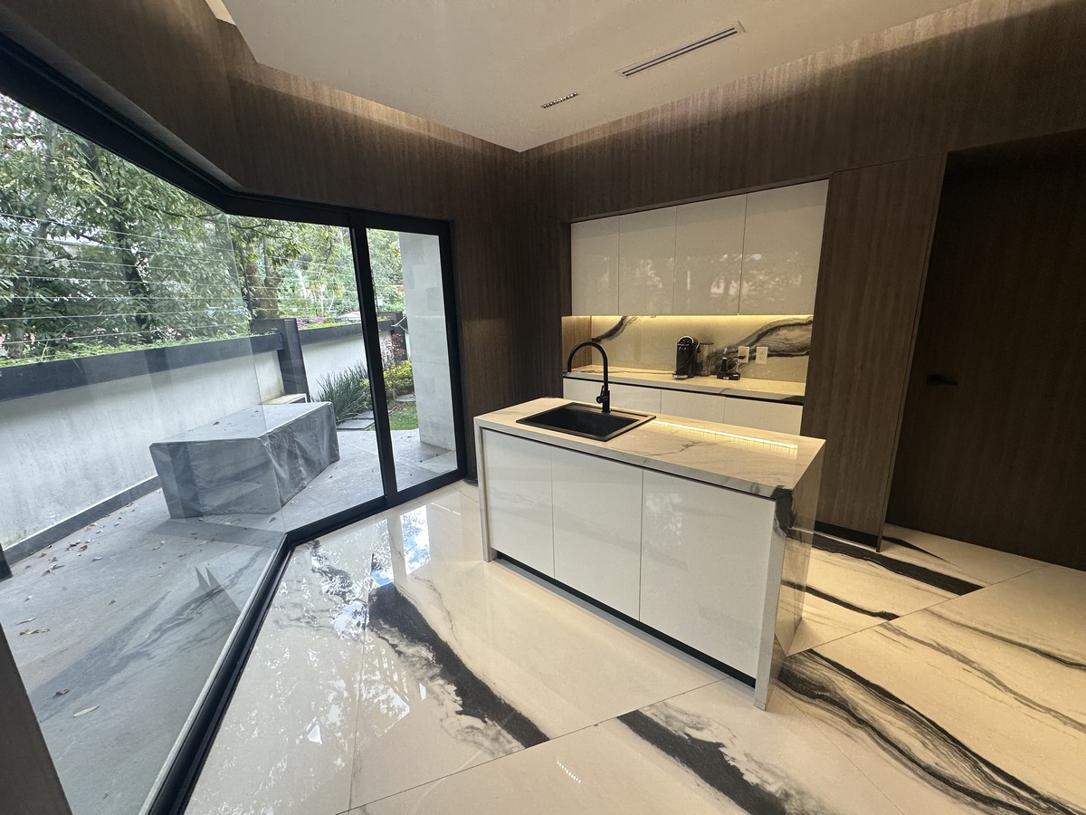 Acabados en mármoles y canteras de importación, carpinterías en nogal, cajillos con iluminación indirecta, iluminación centralizada y maderas de ingeniería de alta calidad. Cocina equipada con doble refrigerador, hornos, grifería, estufa y filtro de la marca Wolf en acero inoxidable. Aire acondicionado en todas las habitaciones.
