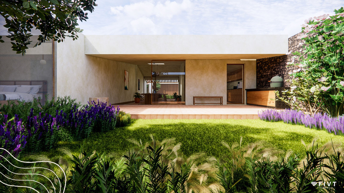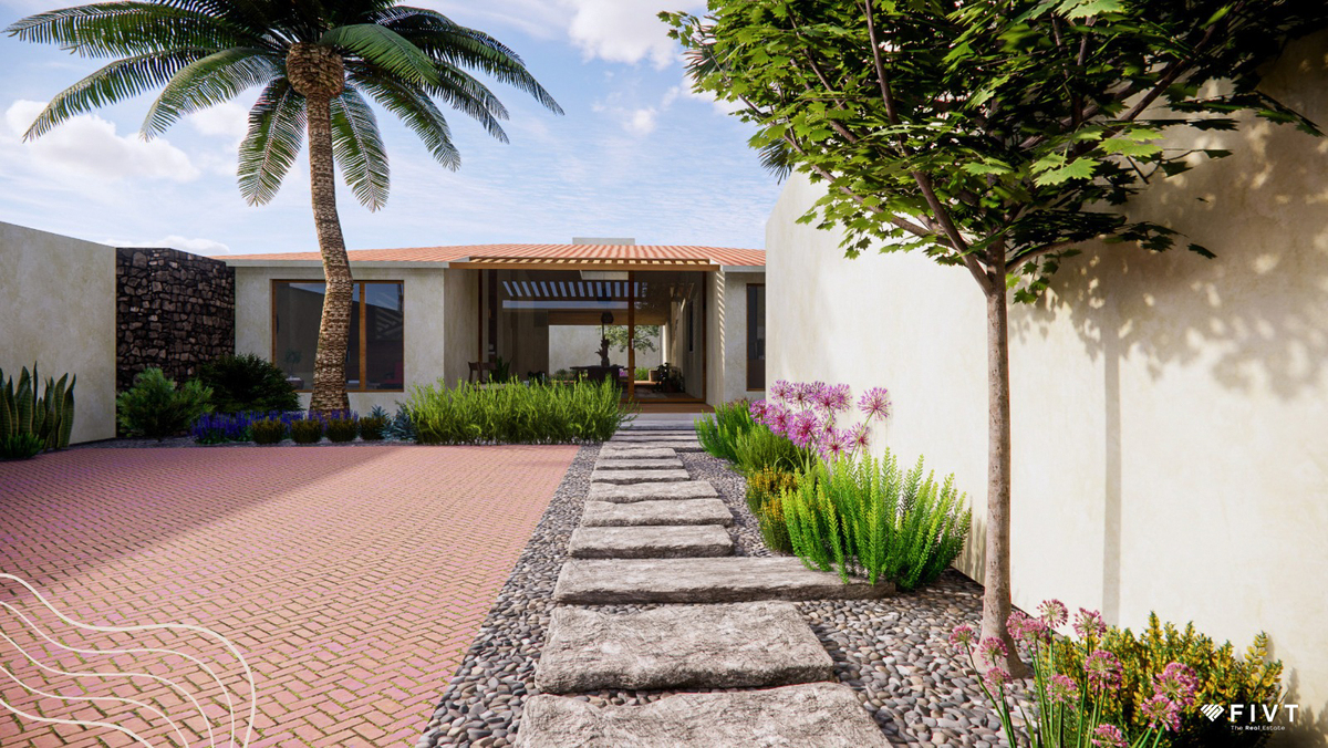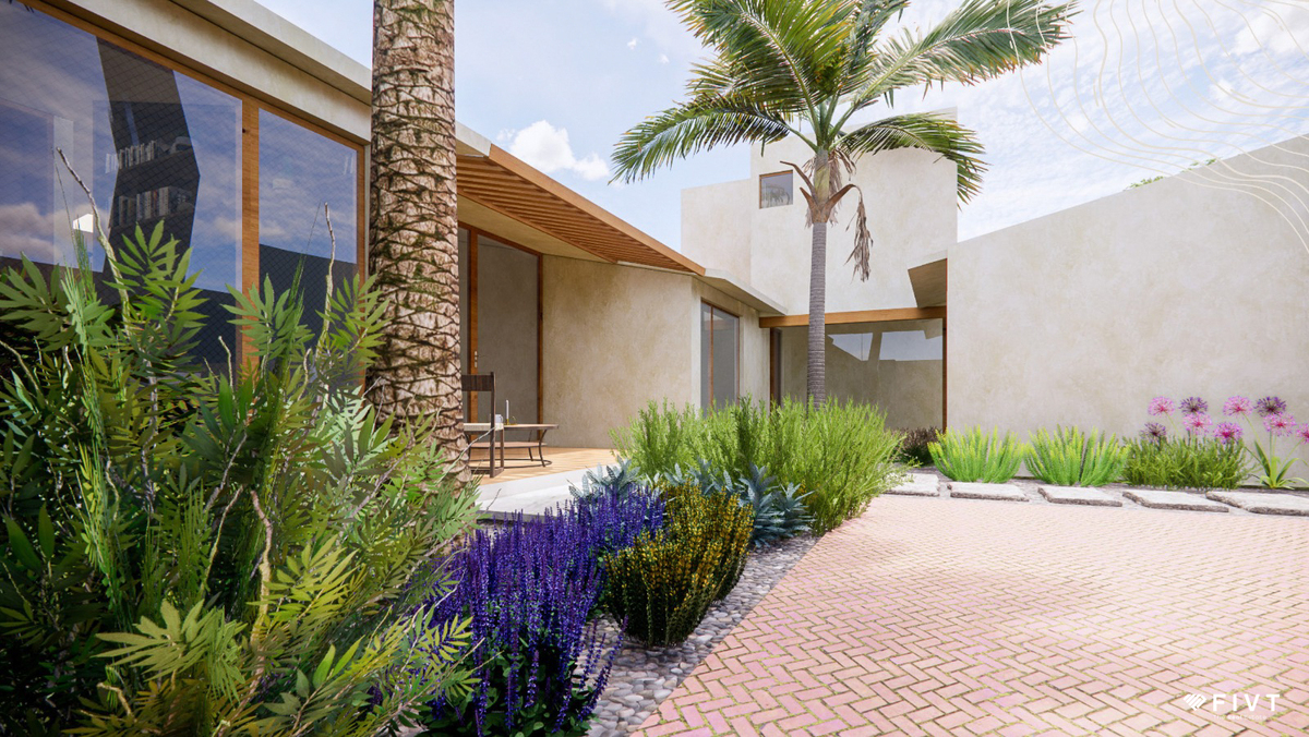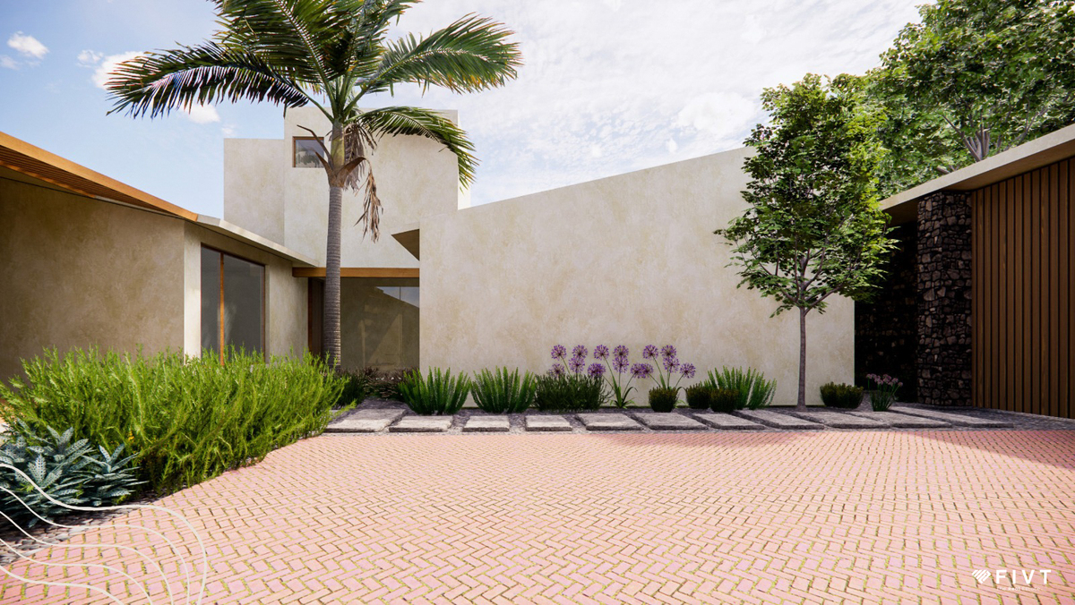 Concepto Paisajístico: La propuesta de la Casa Fresnos 191 está basada en un enfoque de biofilia, donde la casa misma es un jardín envuelto en árboles. Desde las palmeras del jardín frontal hasta la acacia en el jardín posterior, la vegetación juega un papel esencial.