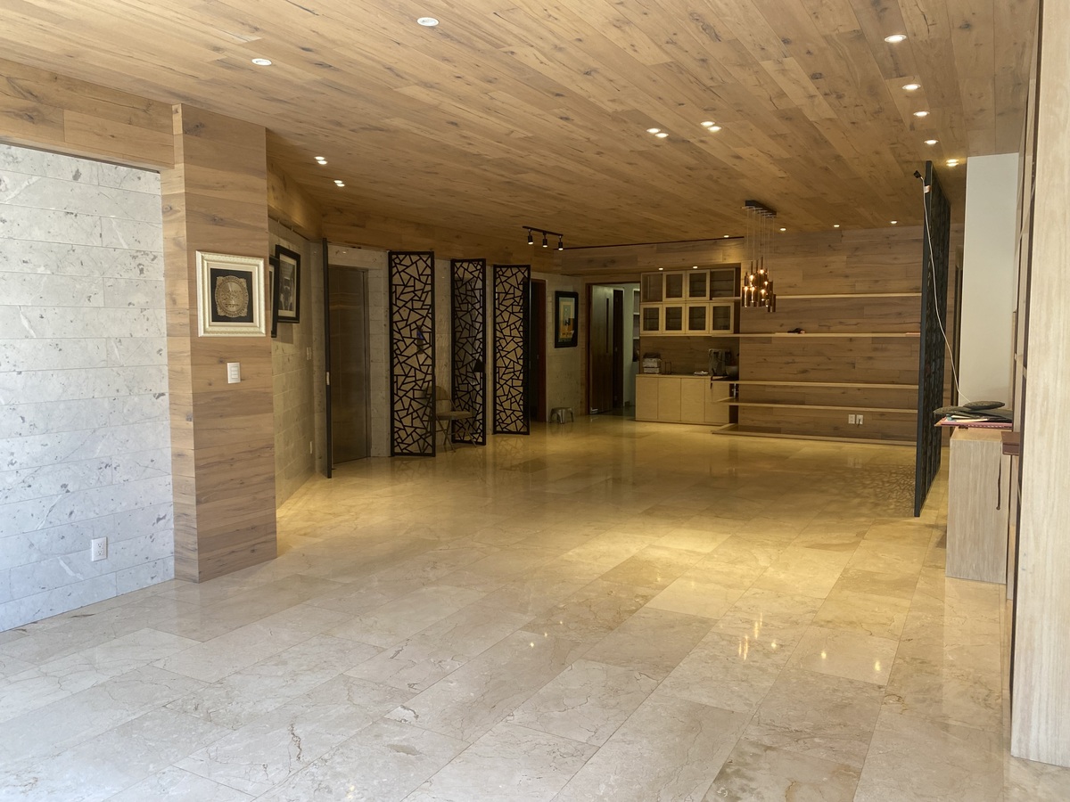 Con una espectacular iluminación natural, pisos de mármol y acabados en madera.