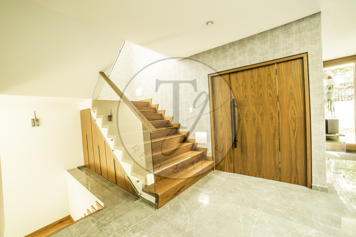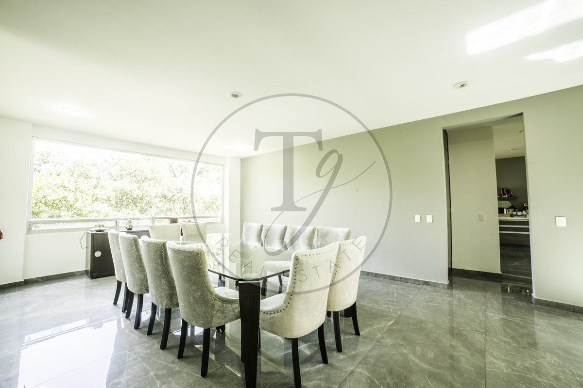 Al ingresar, te recibe un imponente vestíbulo de doble altura que brinda gran luminosidad y sensación de amplitud. En esta área se encuentra una amplia sala que conecta de forma armoniosa con el comedor, creando un espacio ideal para reuniones familiares y sociales.
