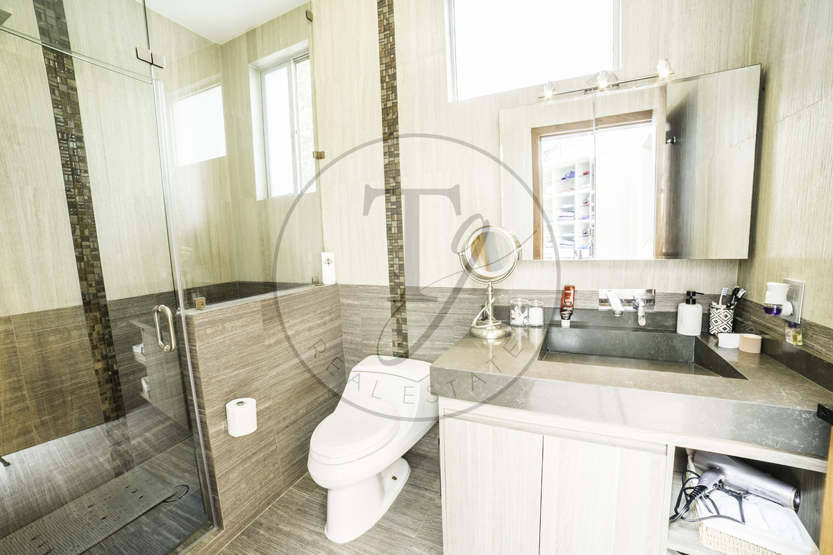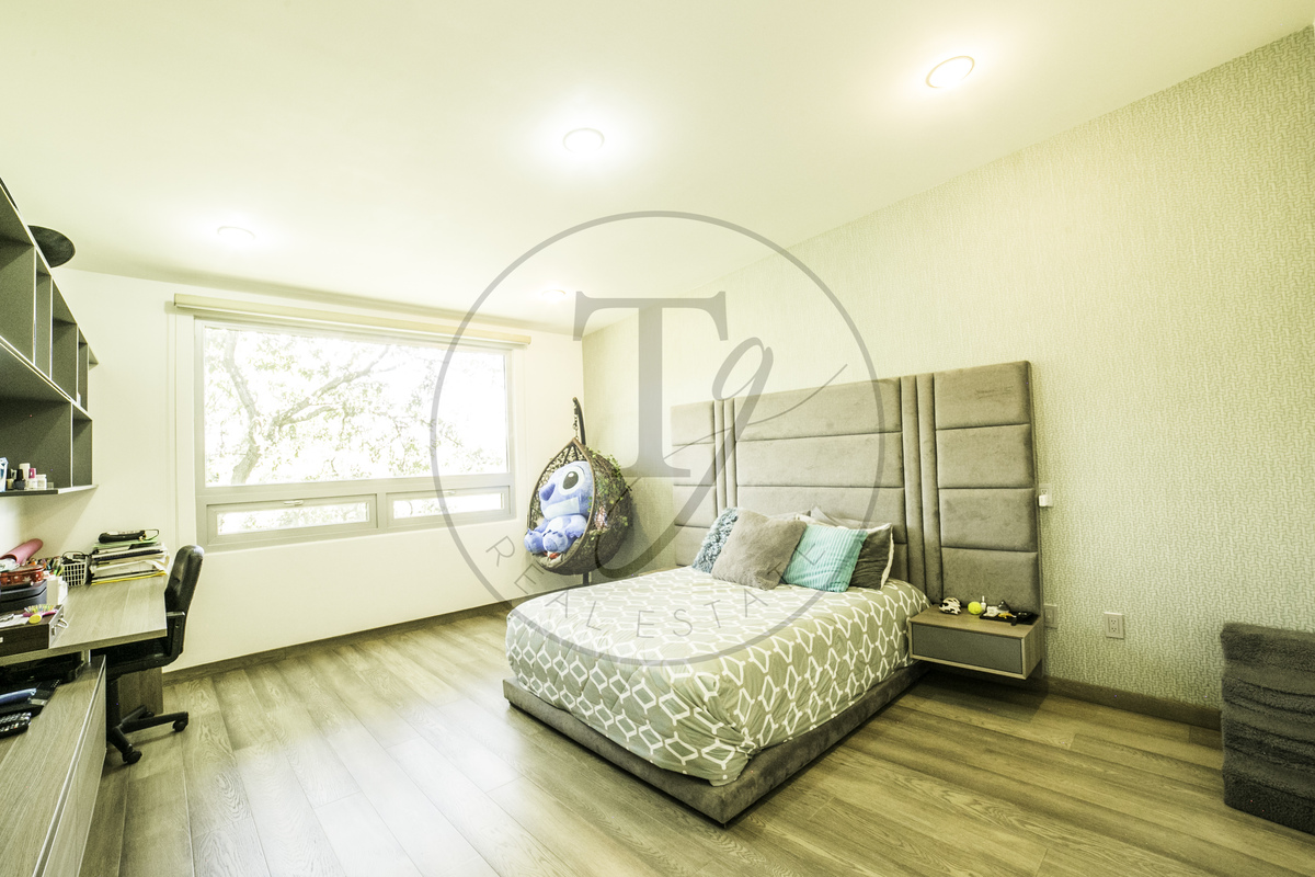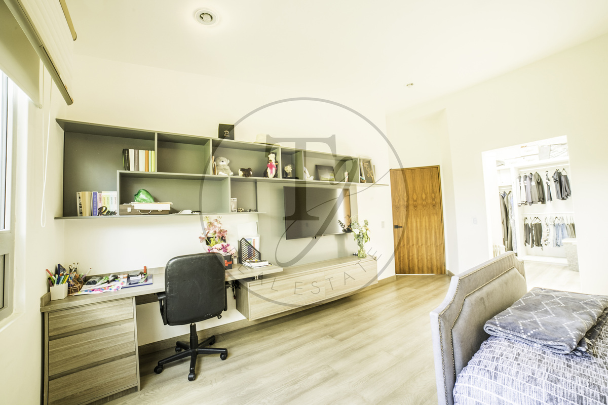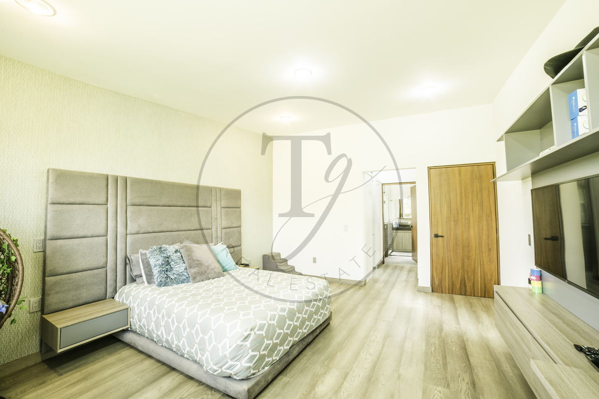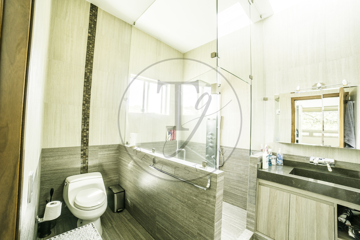 En el primer nivel, la casa cuenta con cuatro recámaras, todas con baño completo, walk-in closet y hermosas vistas al entorno natural. También encontrarás un cómodo family room.