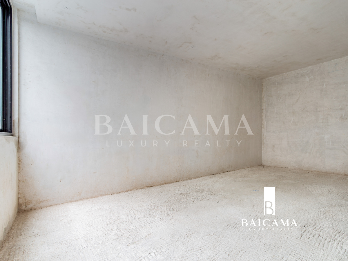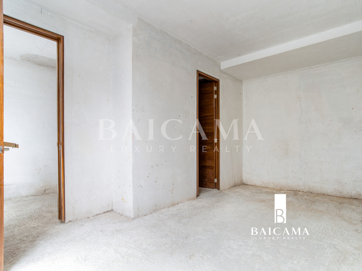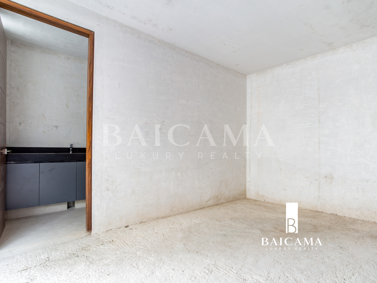 Cuenta con 3 recámaras, cada una con baño completo, medio baño de visitas, balcón, cuarto de servicio y bodega. Se entrega en obra blanca, ideal para personalizarlo a tu gusto.