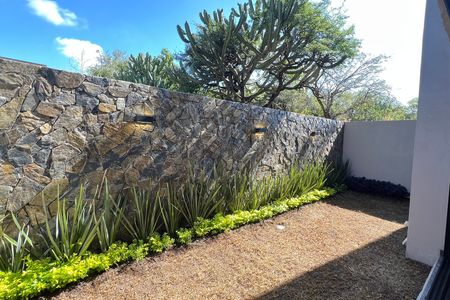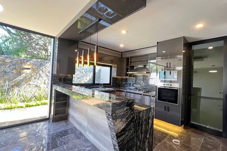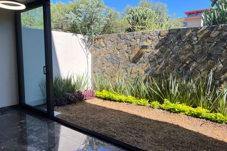 El diseño incorpora un árbol central interior rodeado de una jardinera y un domo eléctrico, creando un espacio lleno de luz y armonía. La terraza, ideal para reuniones, incluye un bar de madera, techo de deck y cortina eléctrica, mientras que el jardín privado aporta un toque natural con su árbol y plantas decorativas.