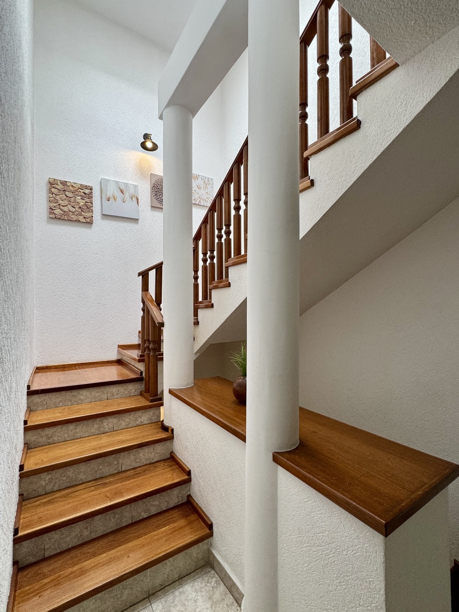 En el primer nivel se encuentra un hall distribuidor con clóset de blancos, tres habitaciones, la principal super amplia con salita y bed window, chimenea, gran vestidor y baño completo (con tina y regadera); la segunda habitación con gran clóset, hermosos ventanales y techos a dos aguas, la tercera habitación de gran tamaño y espacioso clóset, y ambas recámaras comparten baño en pasillo.
