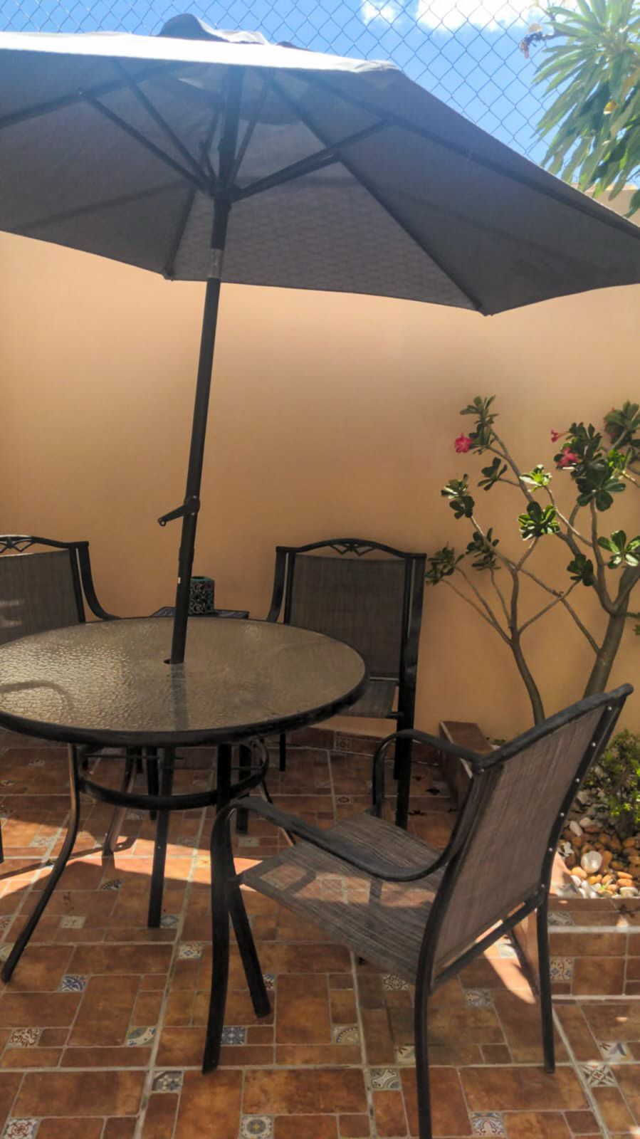 El condominio cuenta con vigilancia las 24 horas, además de amenidades como alberca y palapas.