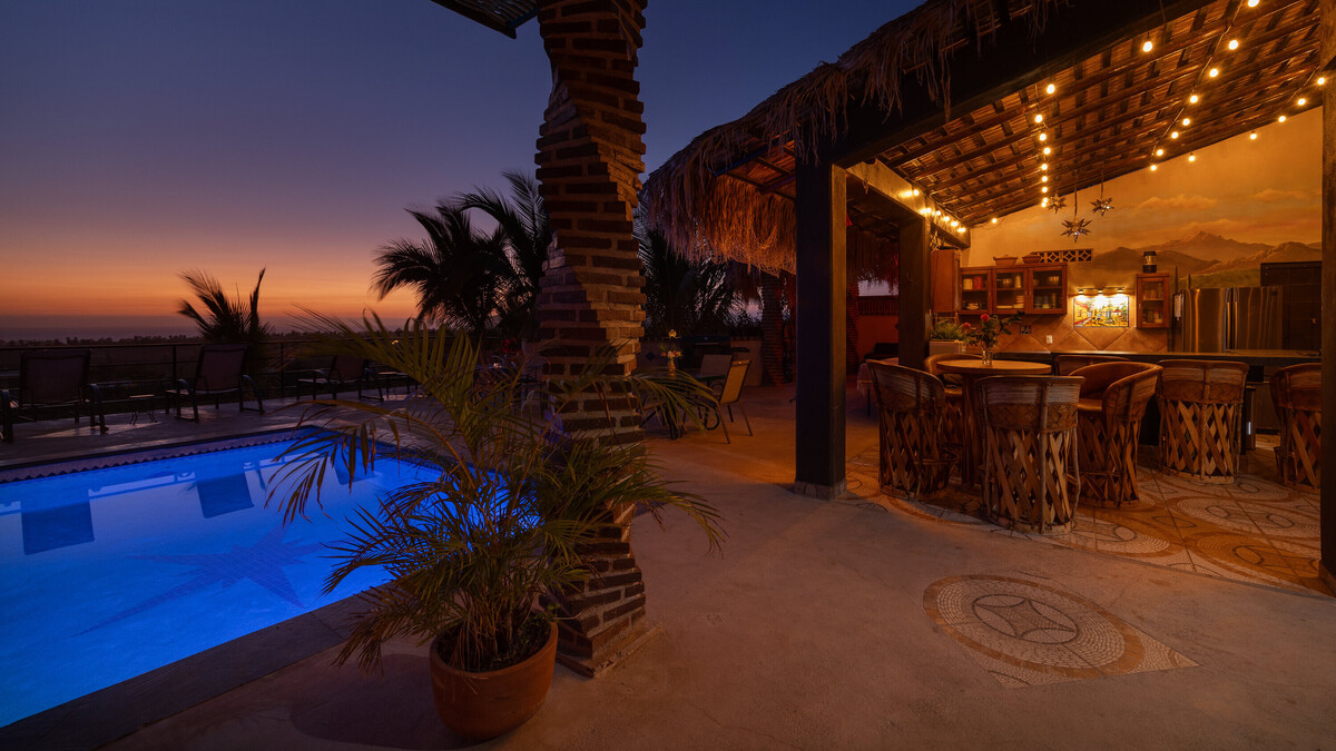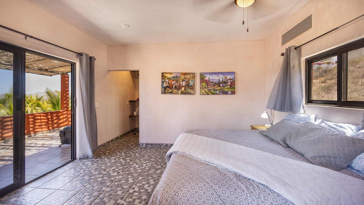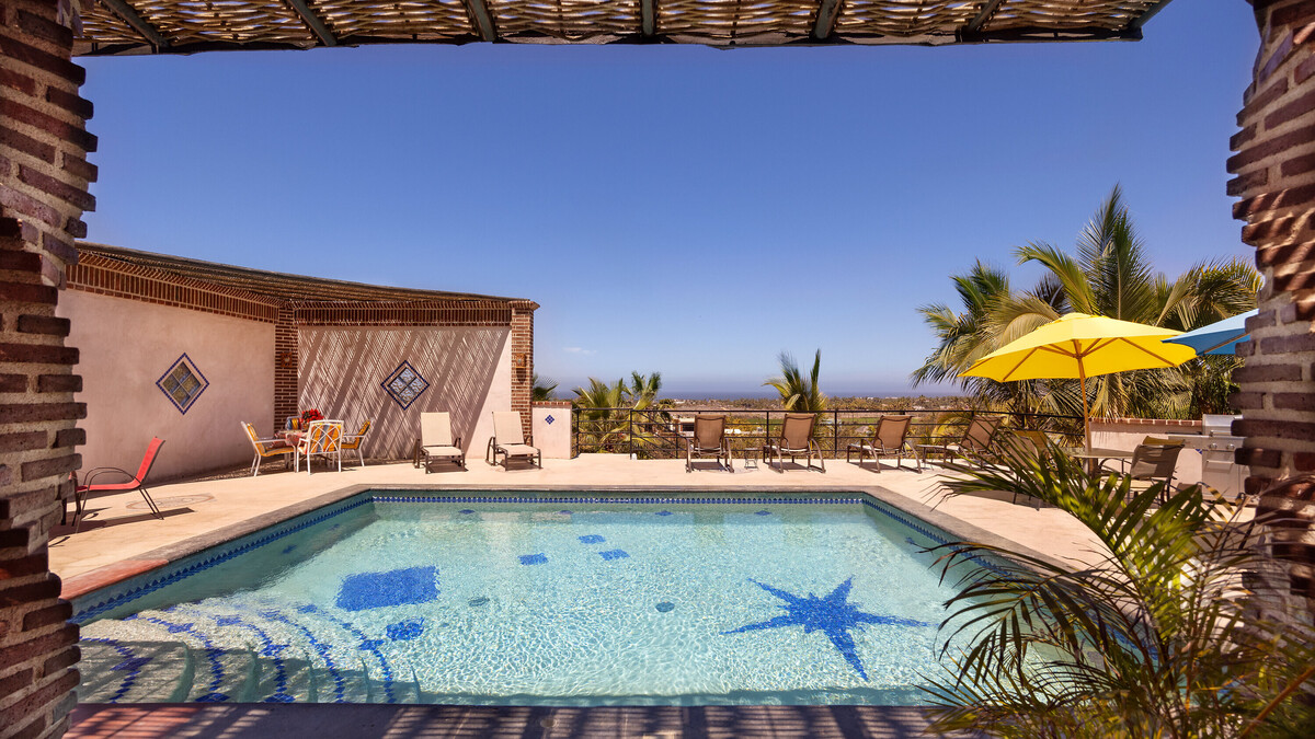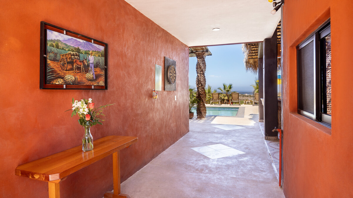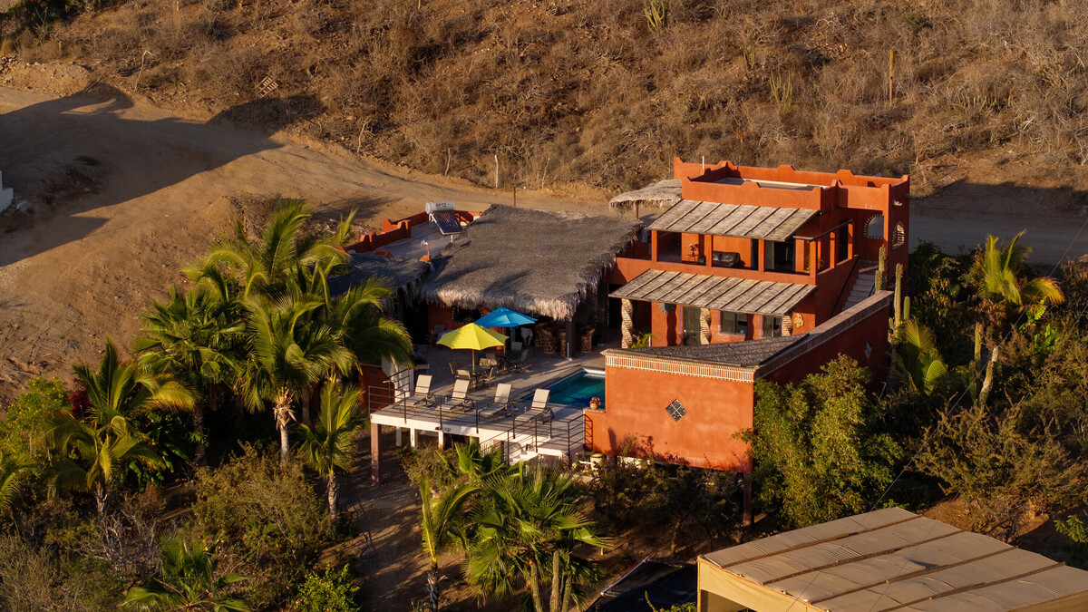 Esta impresionante y espaciosa villa te regala cautivadoras vistas al océano al atardecer y está comprometida con un estilo de vida respetuoso con el medio ambiente! ¡Imagina estar reunido con amigos en la amplia cocina/barra al aire libre en la palapa, cocinando mientras disfrutas de la gran piscina de agua salada y un hermoso jardín de frutos! ¡A solo 5 minutos en coche de la Playa Cerritos y a 10 minutos de Todos Santos, estarás cerca de famosos puntos de surf y deliciosos restaurantes de granja a la mesa! La villa cuenta con seis habitaciones, cada una con su propia entrada privada y baño completo. ¡Casi todas las habitaciones ofrecen impresionantes vistas al océano o al bello jardín. El grande y lindo patio está adornado con una clásica pared de ladrillos mexicanos ; la piscina, tiene una personalizada iluminación ambiental. En toda la casa, encontrarás amplias terrazas con vistas al océano, que ofrecen un amplio espacio para cocinar, entretenerse y tomar el sol. Esta propiedad es una favorita en Airbnb y tiene un historial comprobado como un alquiler lucrativo. El historial de alquiler estará disponible si estás interesado.