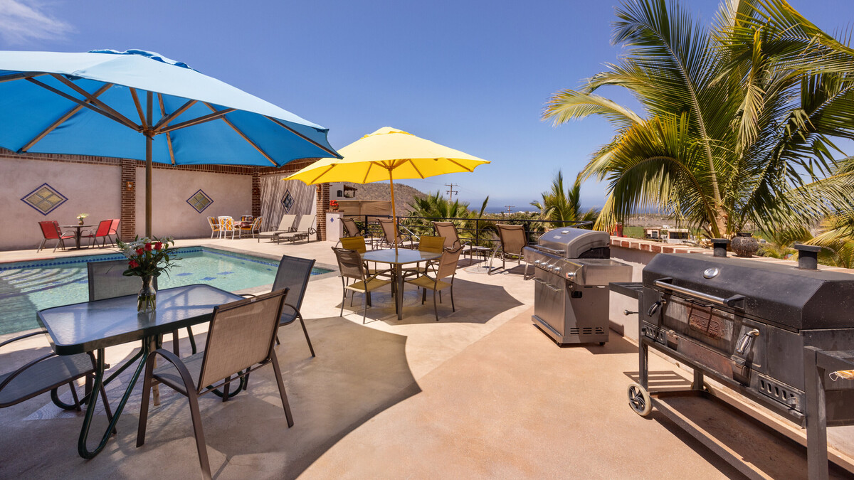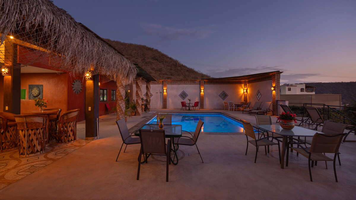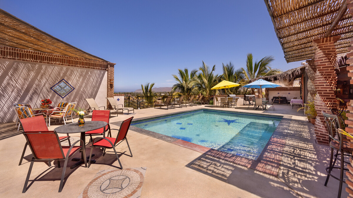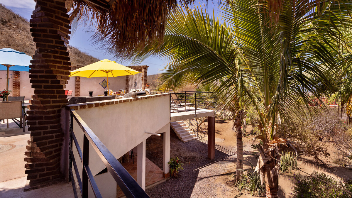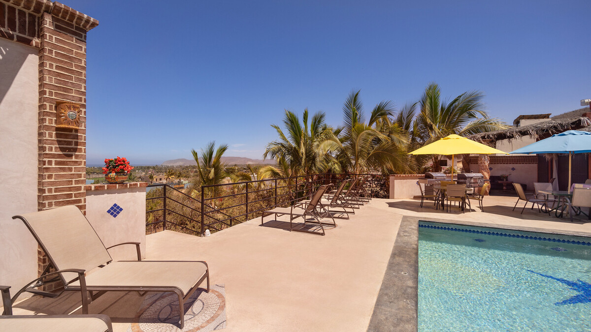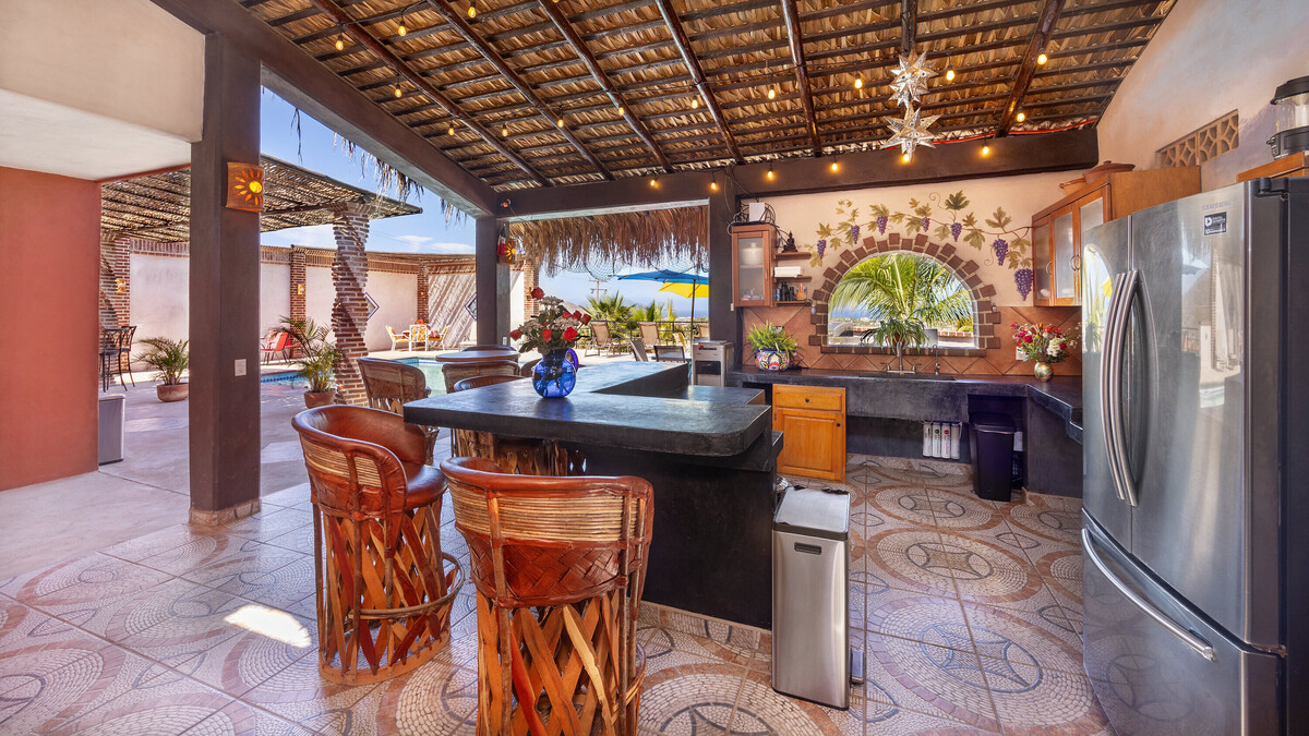 Esta impresionante y espaciosa villa te regala cautivadoras vistas al océano al atardecer y está comprometida con un estilo de vida respetuoso con el medio ambiente! ¡Imagina estar reunido con amigos en la amplia cocina/barra al aire libre en la palapa, cocinando mientras disfrutas de la gran piscina de agua salada y un hermoso jardín de frutos! ¡A solo 5 minutos en coche de la Playa Cerritos y a 10 minutos de Todos Santos, estarás cerca de famosos puntos de surf y deliciosos restaurantes de granja a la mesa! La villa cuenta con seis habitaciones, cada una con su propia entrada privada y baño completo. ¡Casi todas las habitaciones ofrecen impresionantes vistas al océano o al bello jardín. El grande y lindo patio está adornado con una clásica pared de ladrillos mexicanos ; la piscina, tiene una personalizada iluminación ambiental. En toda la casa, encontrarás amplias terrazas con vistas al océano, que ofrecen un amplio espacio para cocinar, entretenerse y tomar el sol. Esta propiedad es una favorita en Airbnb y tiene un historial comprobado como un alquiler lucrativo. El historial de alquiler estará disponible si estás interesado.