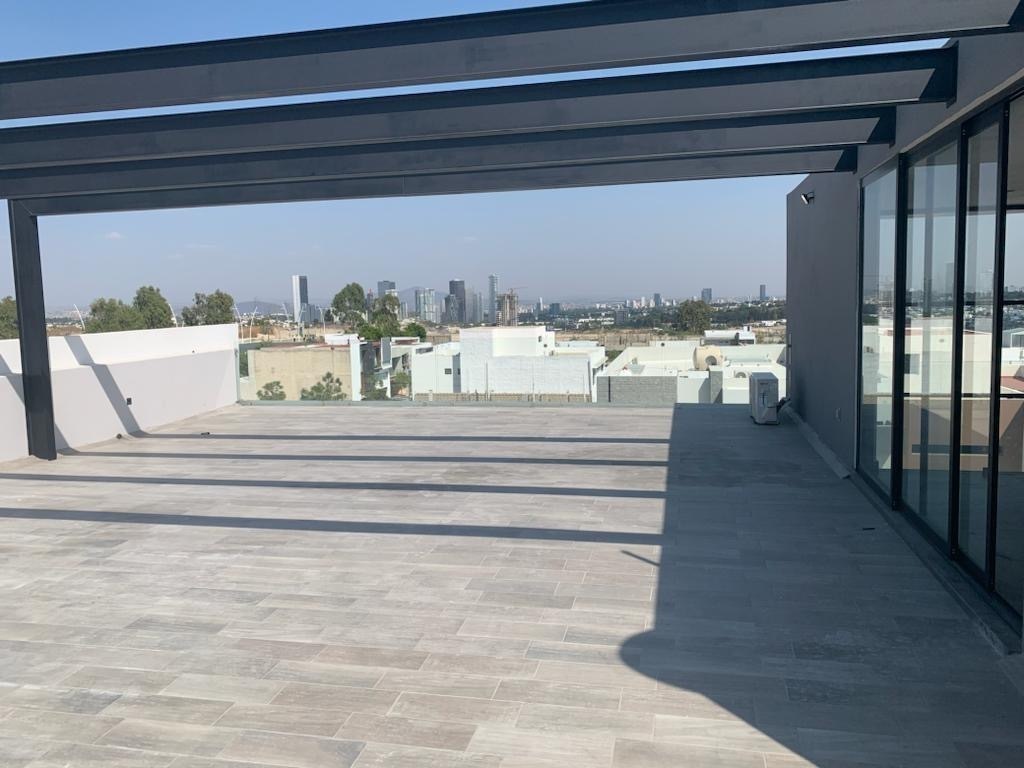 Terraza moderna techada con asador