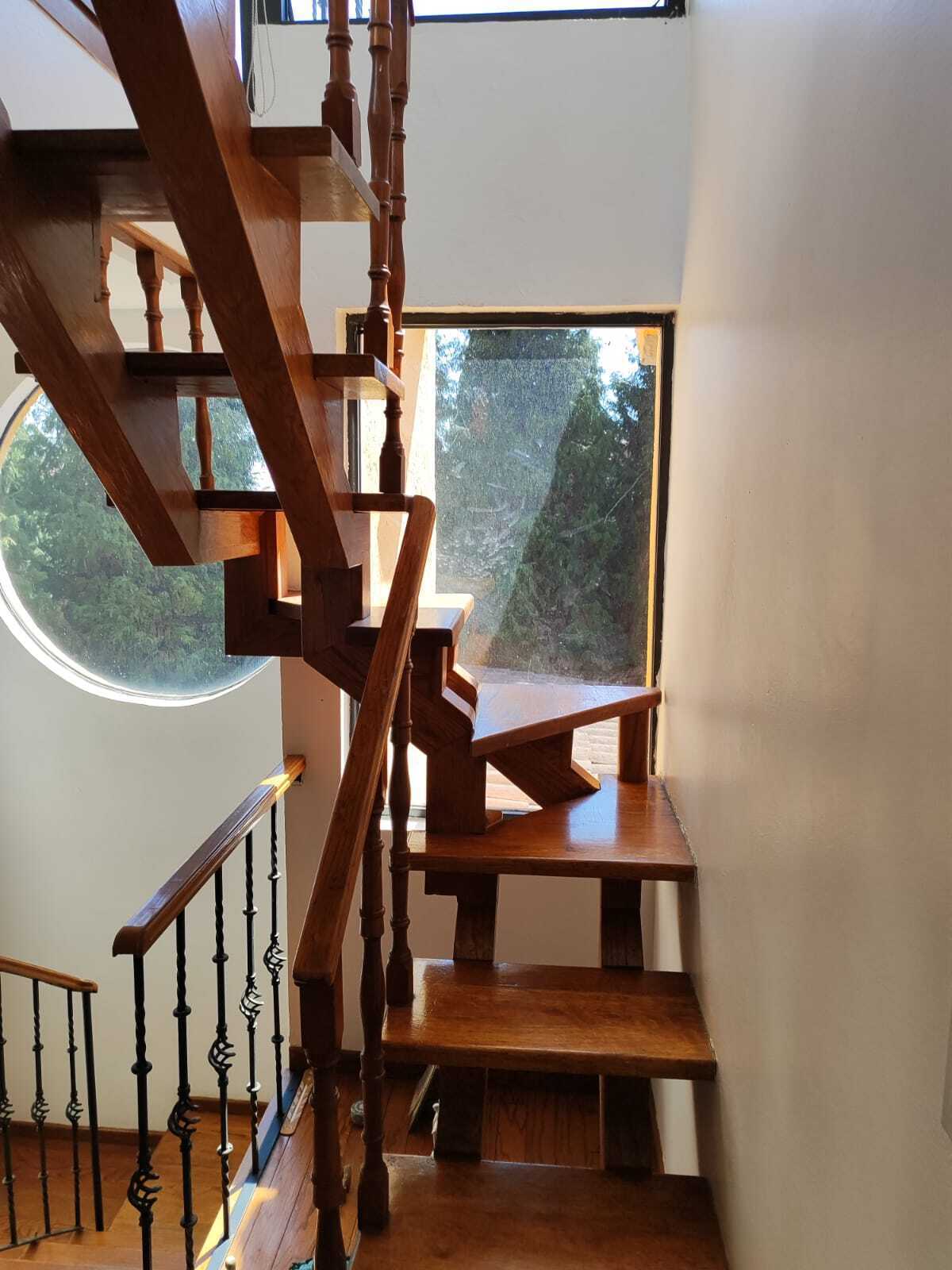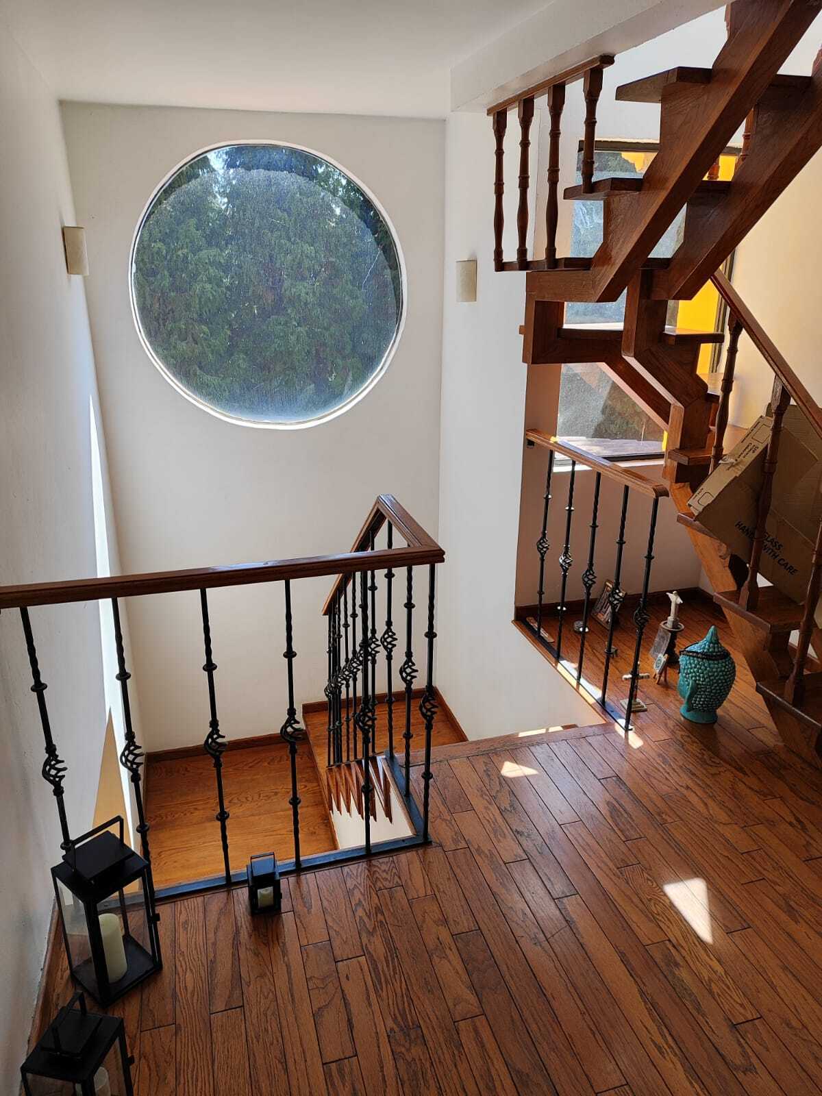La casa de dos pisos , cuenta con 3 recamaras, todas con baño independiente y closet, la principal bastante amplia con vestidor y con jacuzzi , medio baño en P.B. una linda sala con ventanales en dónde puedes apreciar