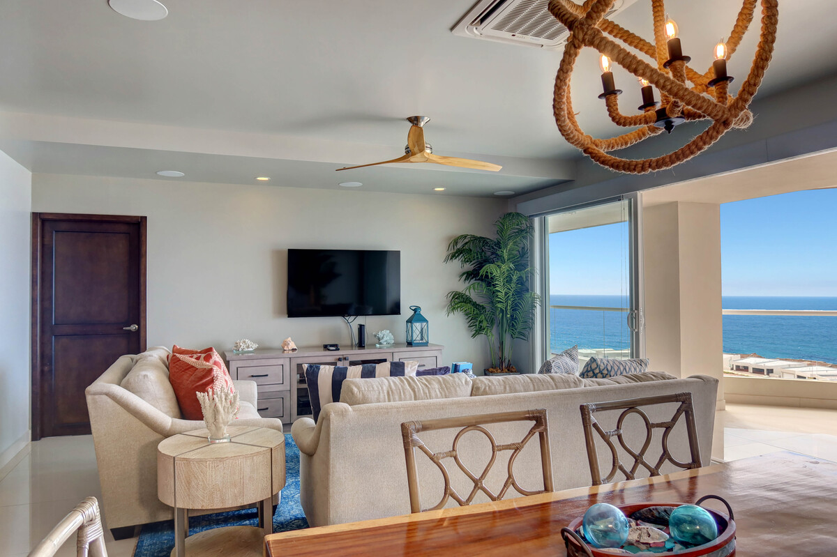 La propiedad se vende completamente amueblada y lista para habitar, con una decoración elegante, electrodomésticos de calidad y ventanales de piso a techo que maximizan la conexión con el mar. La amplia sala y el comedor se integran perfectamente con la cocina moderna, ideal tanto para recibir invitados como para disfrutar de noches tranquilas en casa. La recámara principal frente al mar ofrece un refugio privado con acceso directo al balcón, un amplio vestidor y un baño completo en suite diseñado para la comodidad y el estilo. La segunda recámara es igualmente funcional, perfecta para visitas, familiares o como oficina en casa.