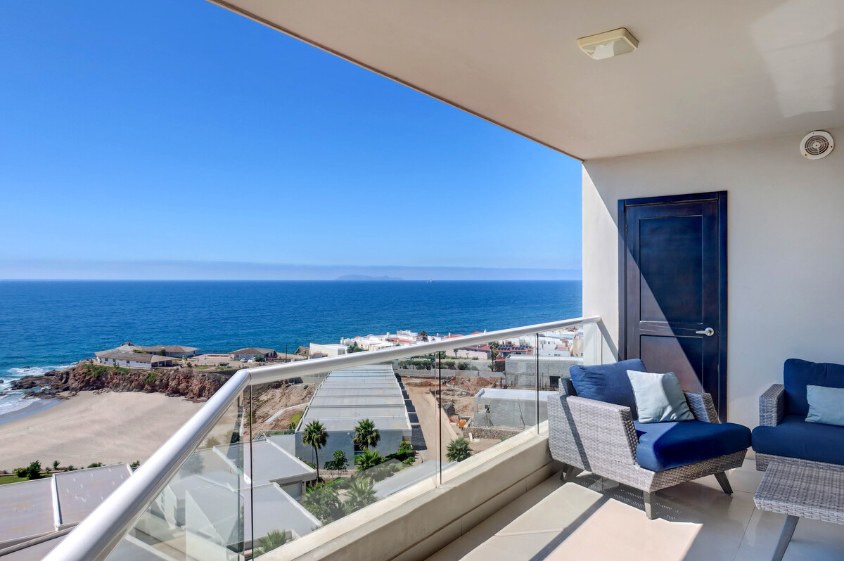Este impresionante condominio frente al mar se encuentra en el séptimo piso de la Torre 1 en La Jolla Excellence, la comunidad residencial más exclusiva frente a la playa en Rosarito. Con 150 metros cuadrados de construcción (1,611 pies cuadrados), esta residencia de dos recámaras y dos baños ofrece un diseño de concepto abierto, lleno de luz natural y con vistas panorámicas al Océano Pacífico. Al ser una unidad de esquina, brinda mayor privacidad, vistas más amplias y mejor ventilación, lo que la convierte en una de las distribuciones más deseadas dentro del desarrollo.