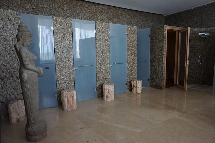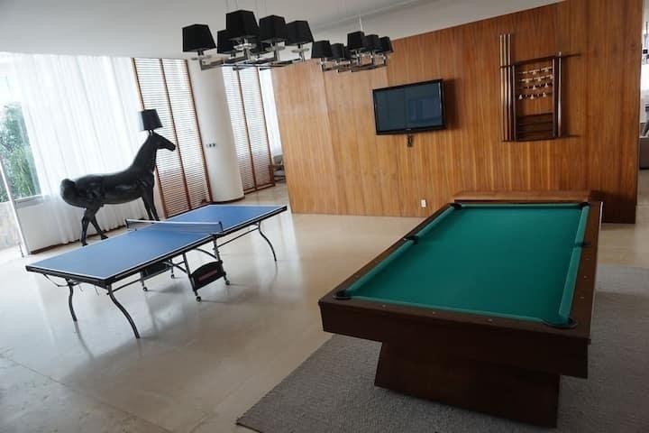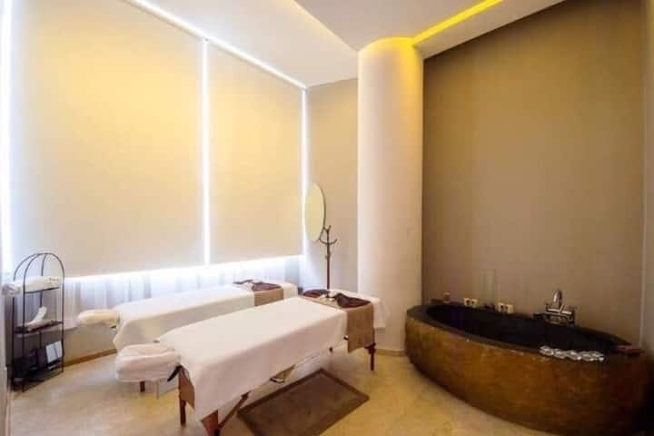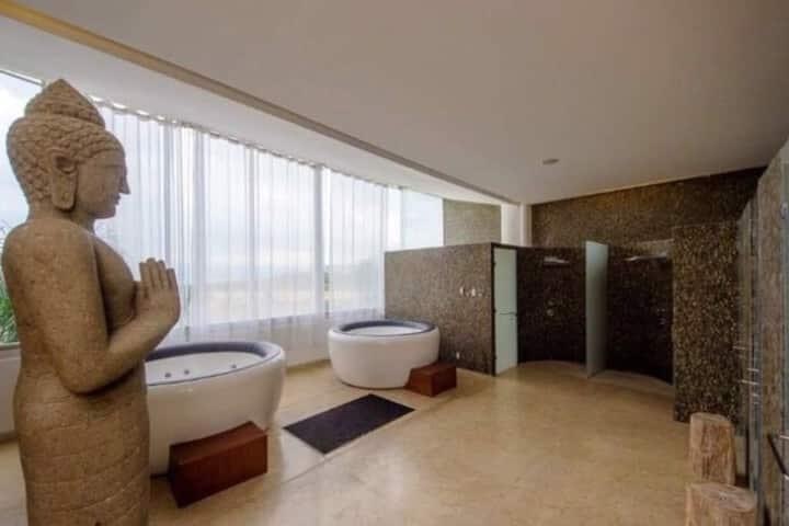*AMENIDADES* Recepción, albercas, seguridad y cámaras de vigilancia las 24 hrs, estacionamiento techado, lobby bar, concierge, centro de negocios, biblioteca, salón de juegos, 2 salas de cine, gimnasio, spa, alberca, track de nado, asoleaderos, club de playa, áreas verdes