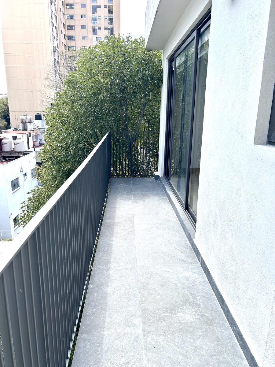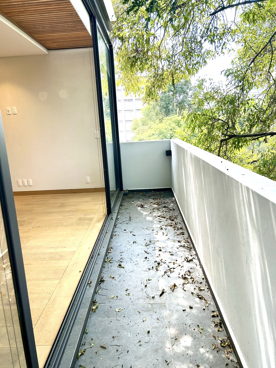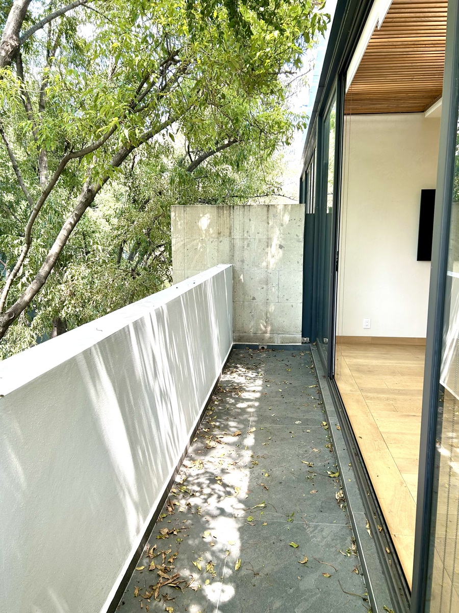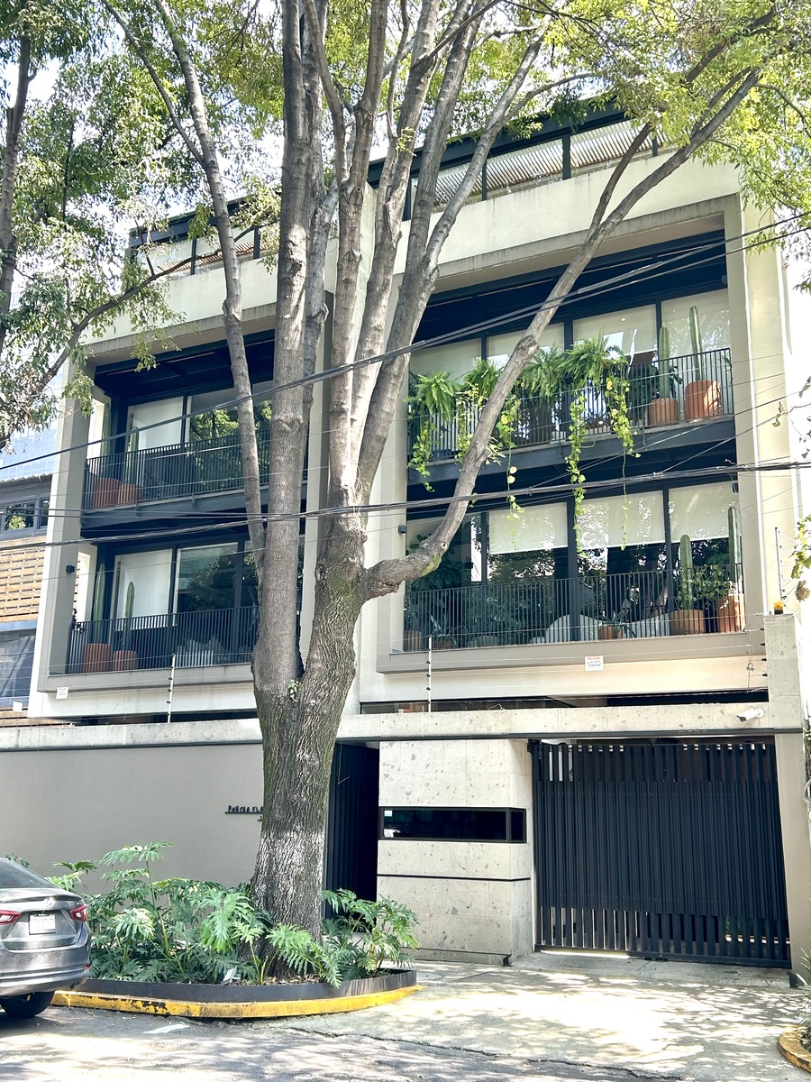 Hermoso PH lleno de luz, moderno, techos altos, amplios espacios, acabados de lujo, vistas verdes a copa de árboles, balcones, con todos los servicios incluidos en la renta, luz, agua, gas e internet, en edificio pequeño con vigilancia 24 horas.