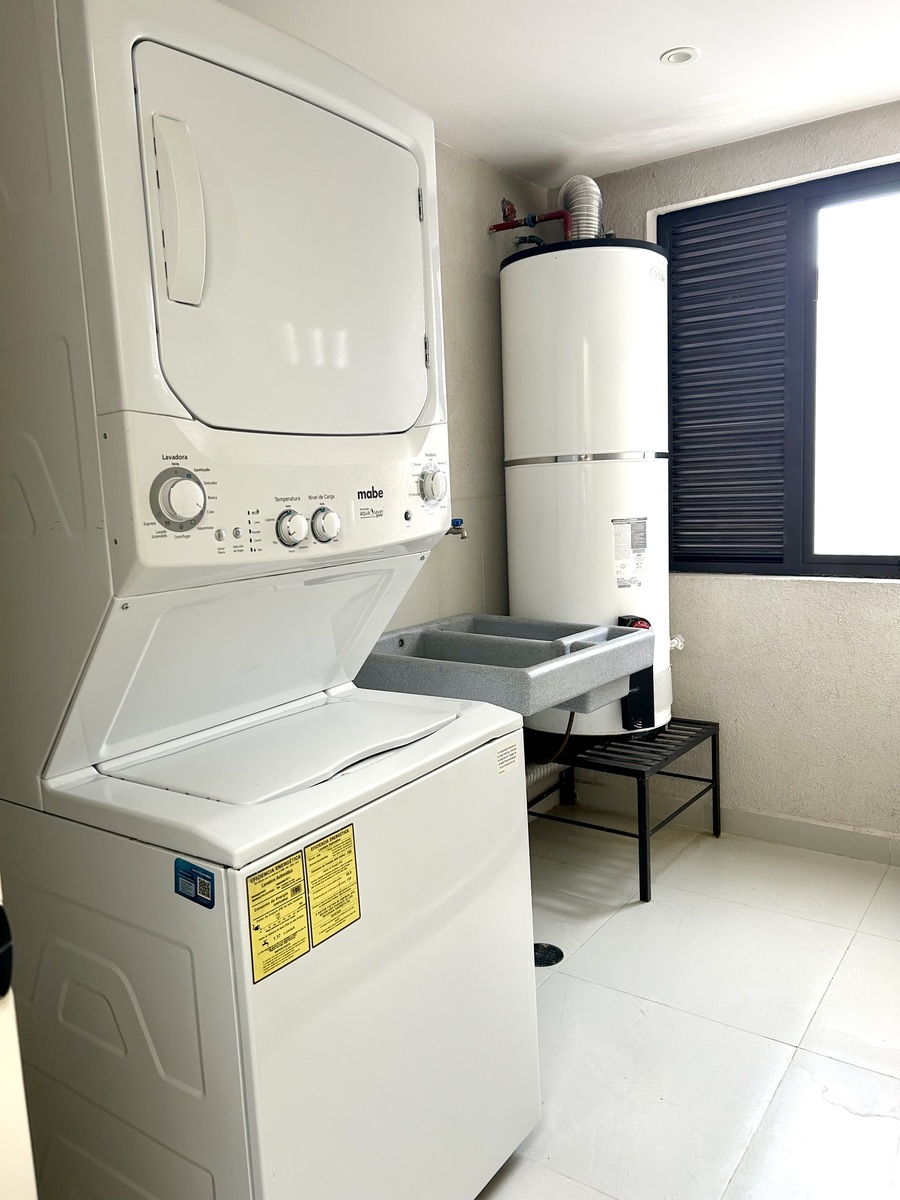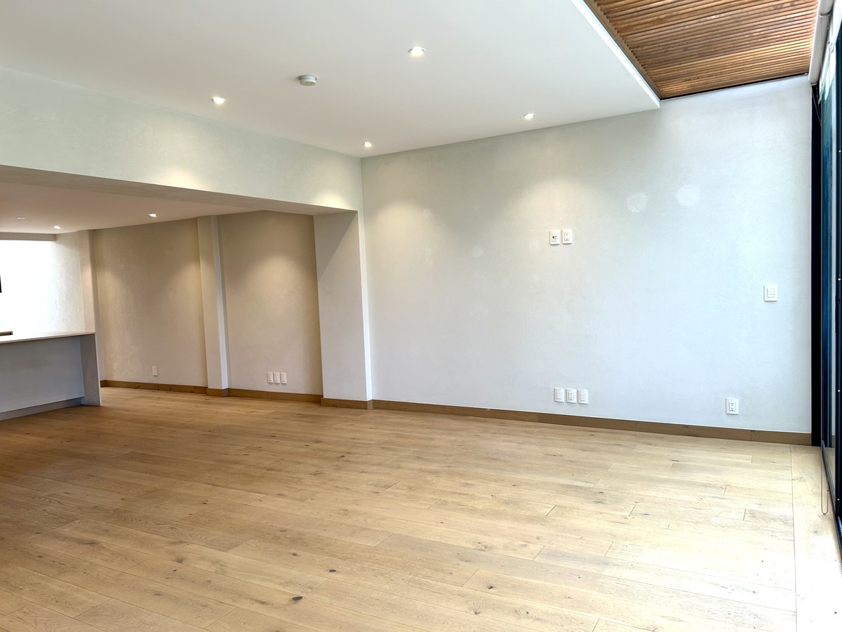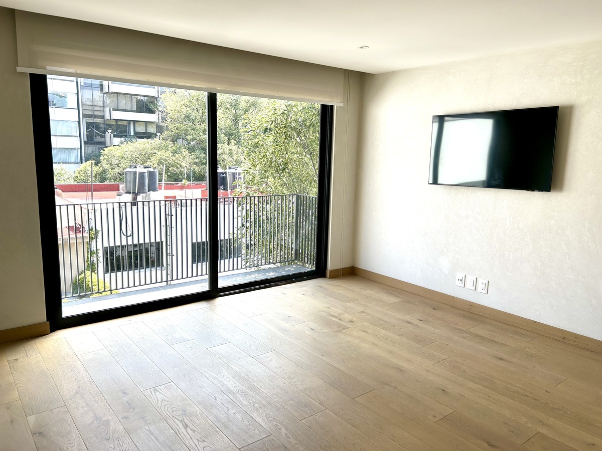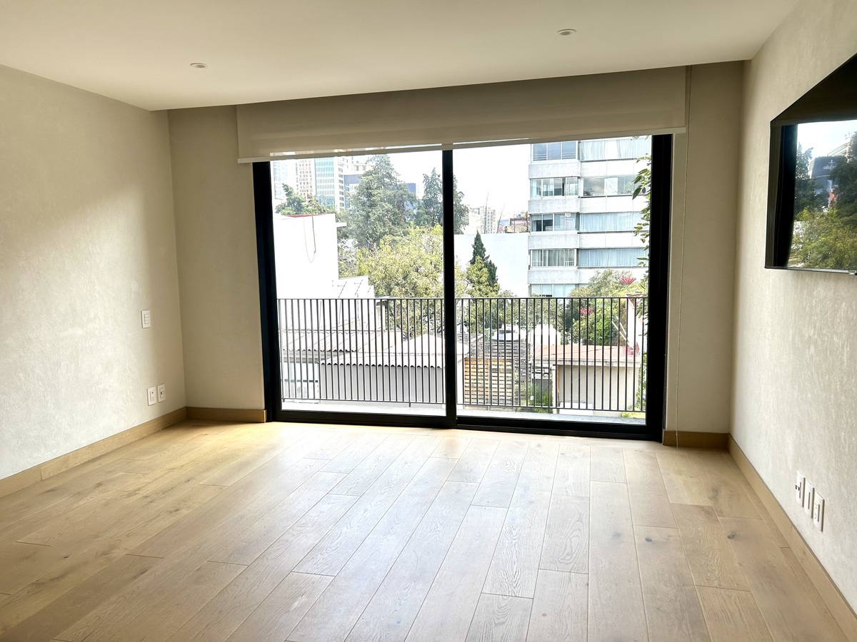 Hermoso PH lleno de luz, moderno, techos altos, amplios espacios, acabados de lujo, vistas verdes a copa de árboles, balcones, con todos los servicios incluidos en la renta, luz, agua, gas e internet, en edificio pequeño con vigilancia 24 horas.