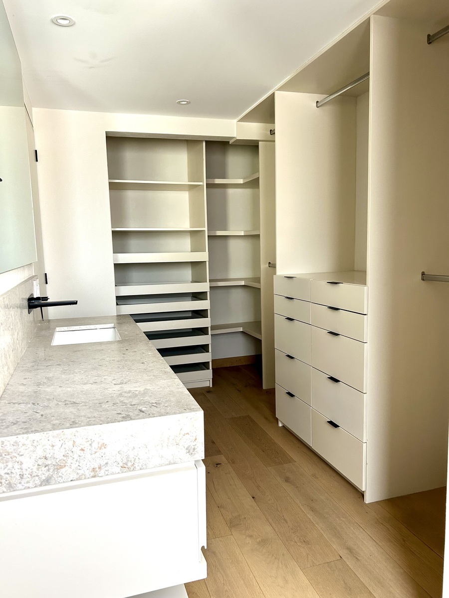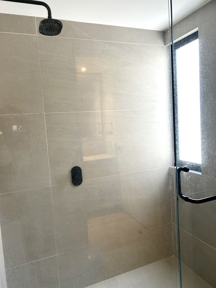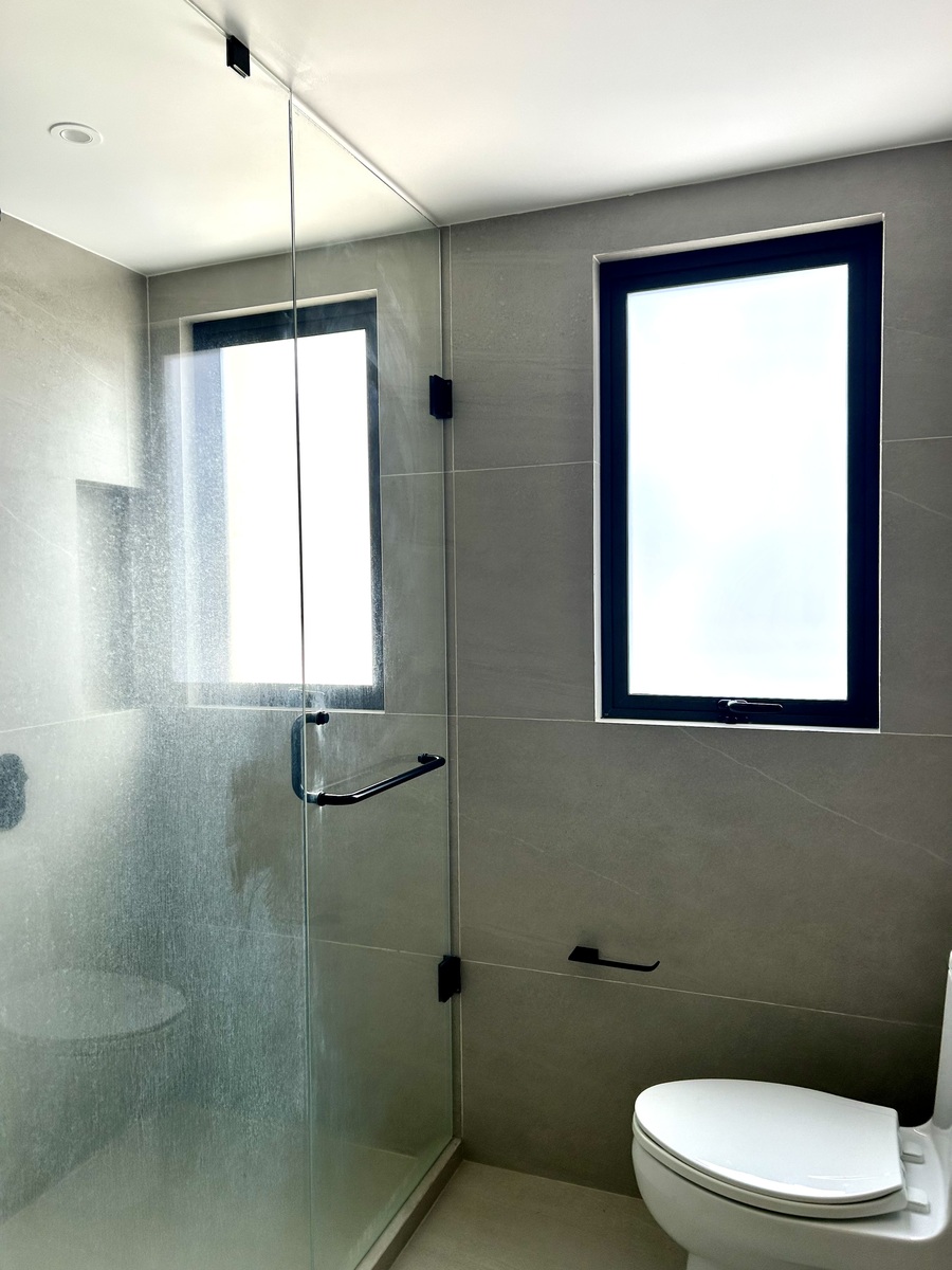 Tres recámaras, la principal de buen tamaño con balcón, vestidor y baño integrado, las recámaras secundarias con closets y comparten baño.