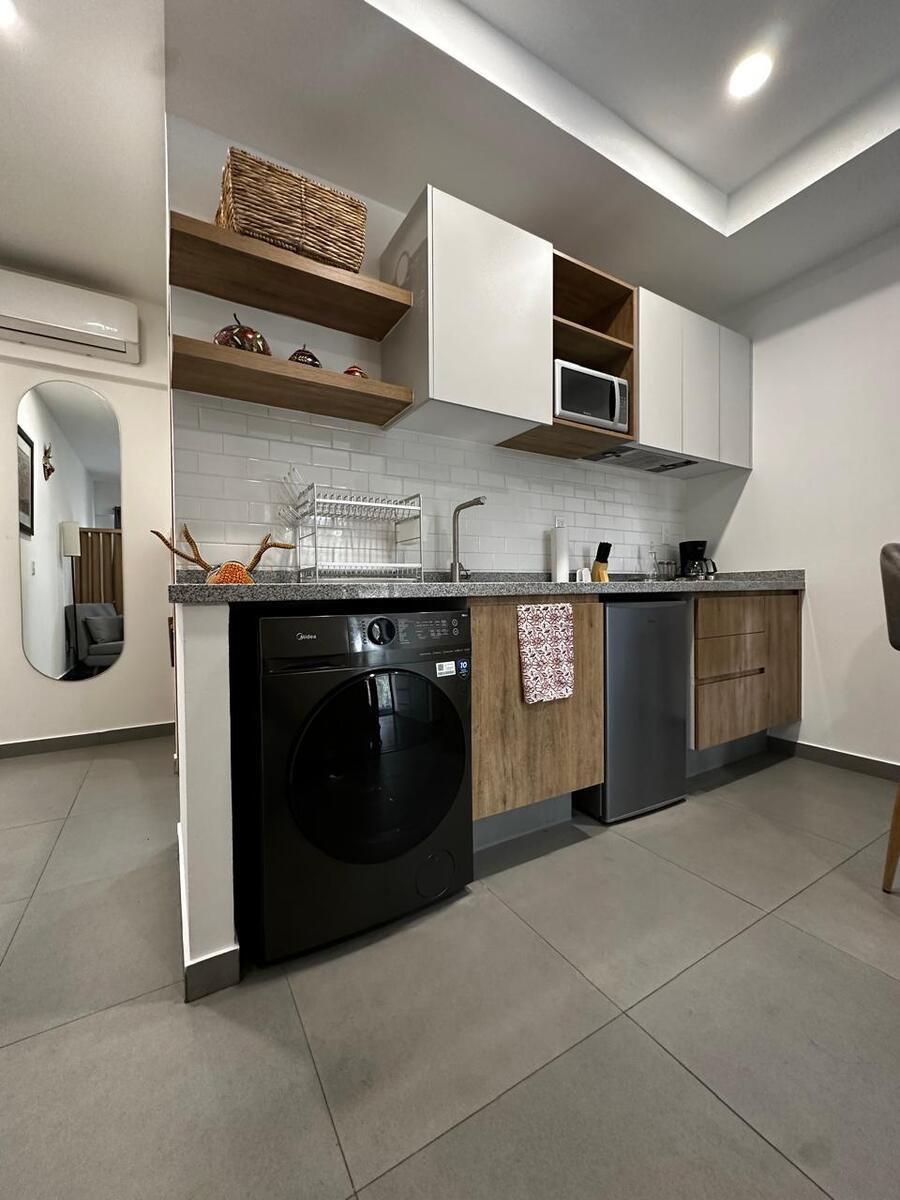El Loft es de un solo espacio abierto con cocina integral , lavadora y secadora (todos los equipos son electricos), pequeña estancia, mini sofá, TV empotrada a la pared, escritorio y a un lado de la estancia, bonita recamara semi integrada , 1 baño completo, adicional tiene un mini split y el acceso al departamento es con clave.