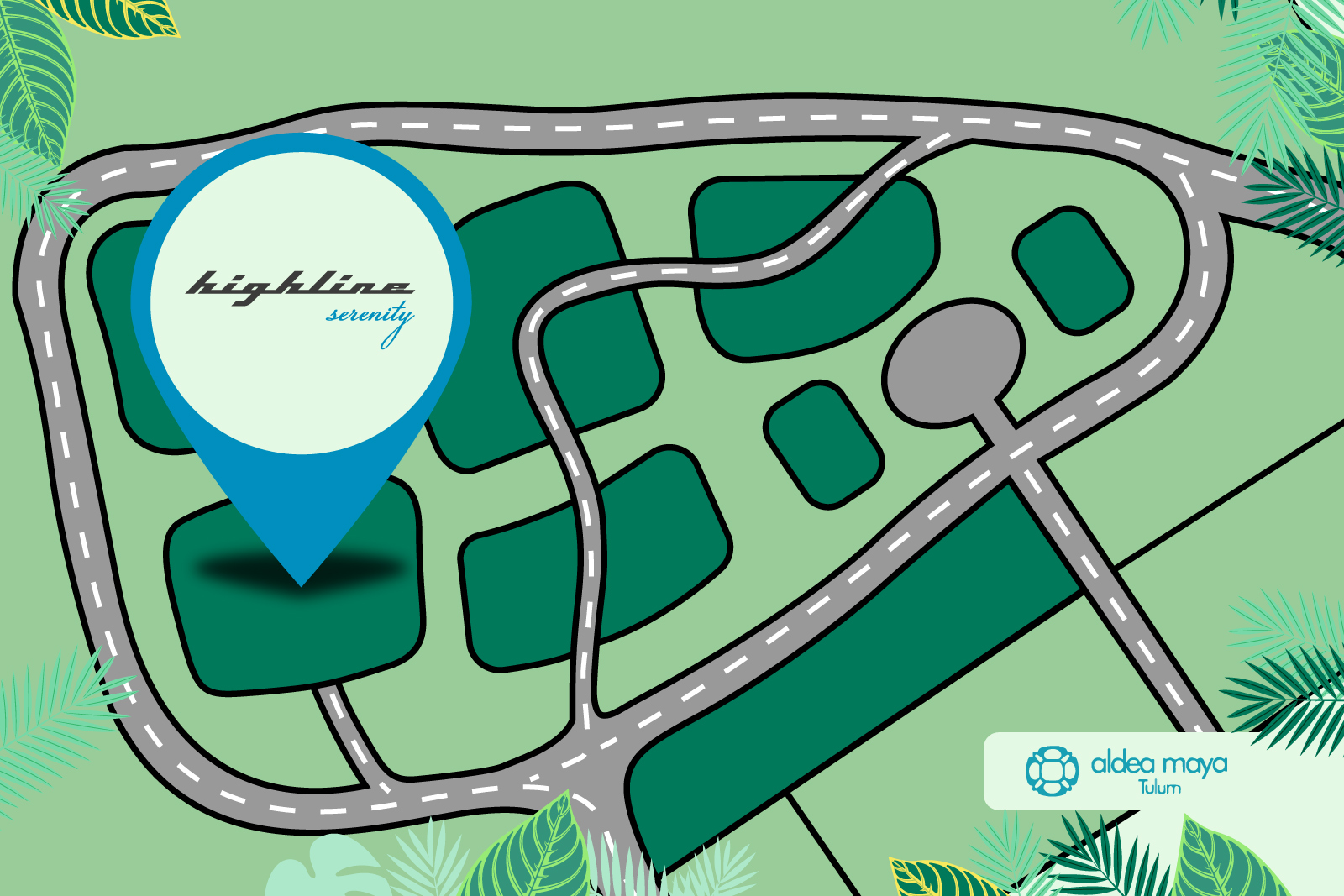 se encuentra dentro de la comunidad privada Aldea Maya, parte de Aldea Zamá. El acceso a esta área está controlado las 24 horas del día para mayor seguridad y tranquilidad. Aldea Zamá es la zona más exclusiva; hoy en día es el área de más rápido crecimiento en Tulum, y rodeado de naturaleza, es el lugar perfecto para invertir y vivir.