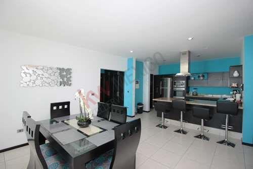 Espacios generosos para Sala de estar, comedor y cocina, es un concepto de espacio abierto que fluye muy bien y que además los terminados en granito, acero inoxidable y cristal le dan un toque de elegancia y estilo que sin duda será del gusto de todos.