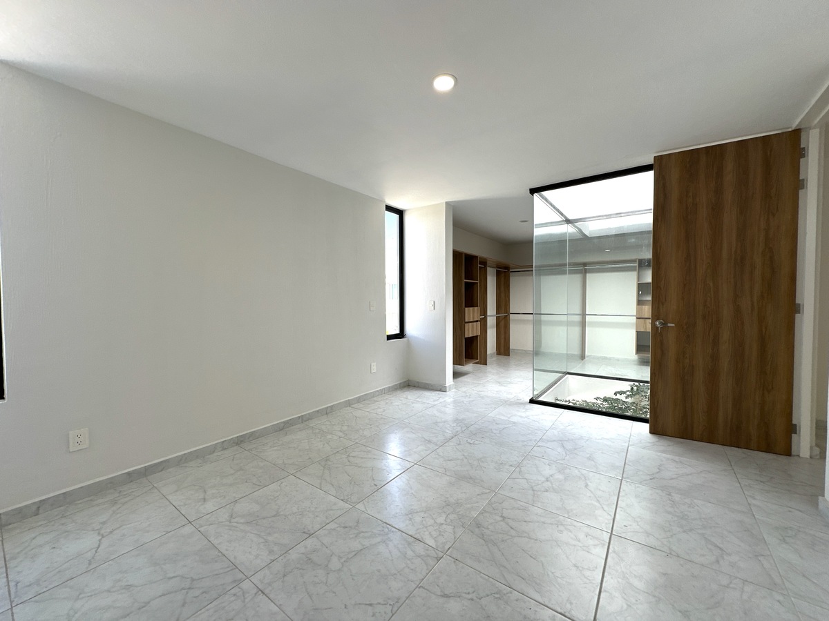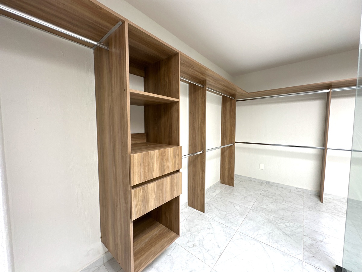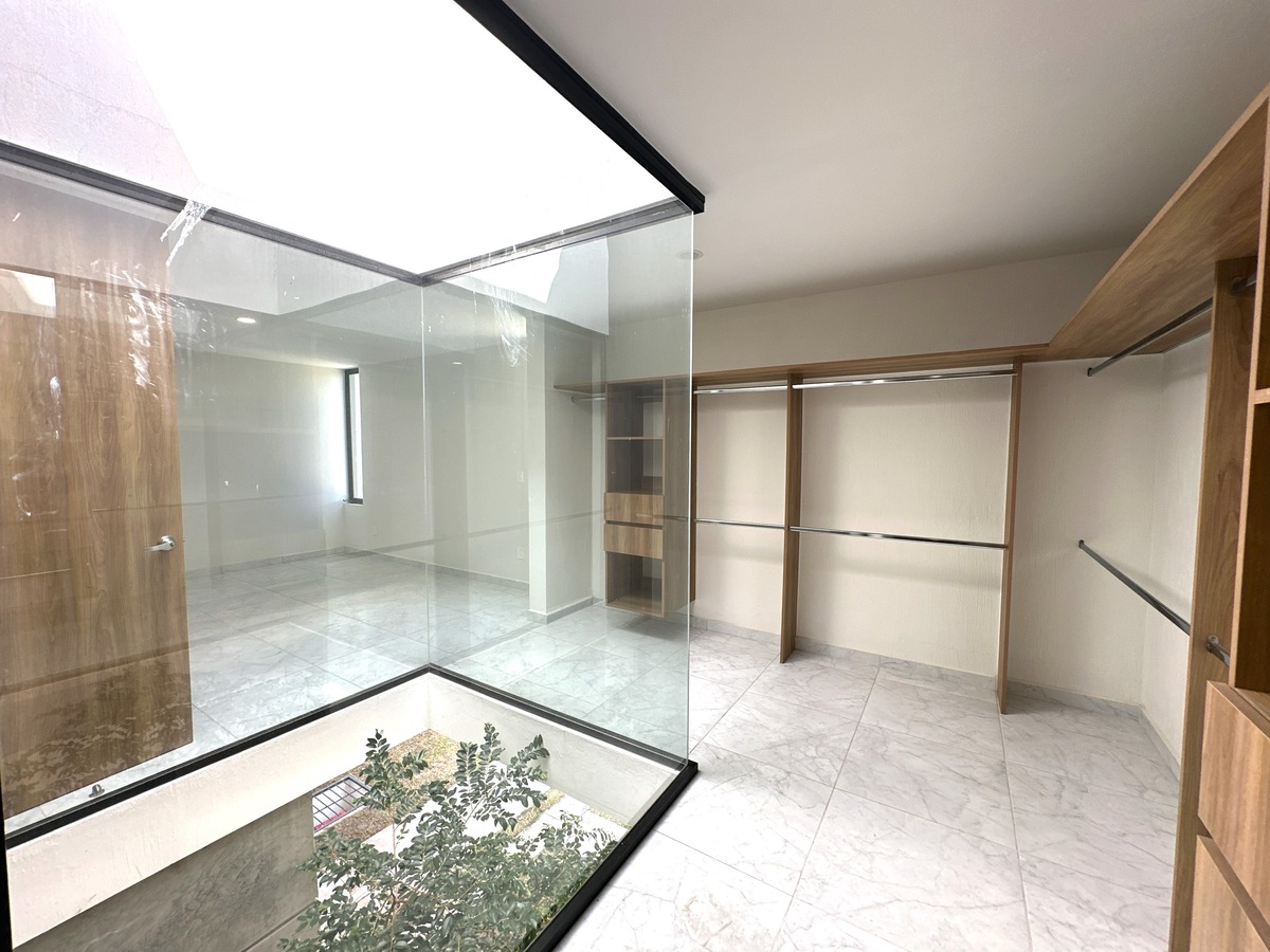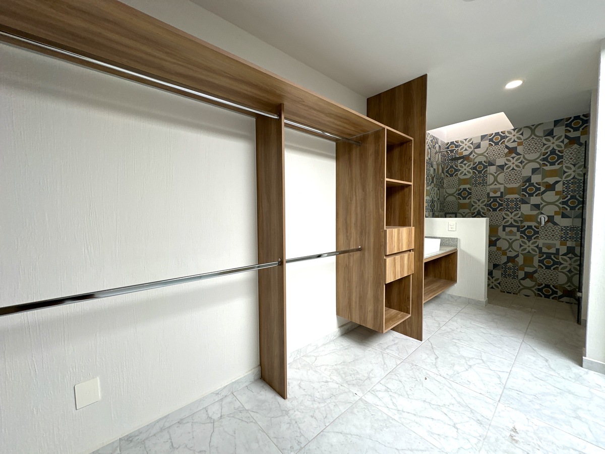 -Recamara principal con amplio vestidor de diseñador con arbol deacorativo en medio de la habitacion y baño propio.